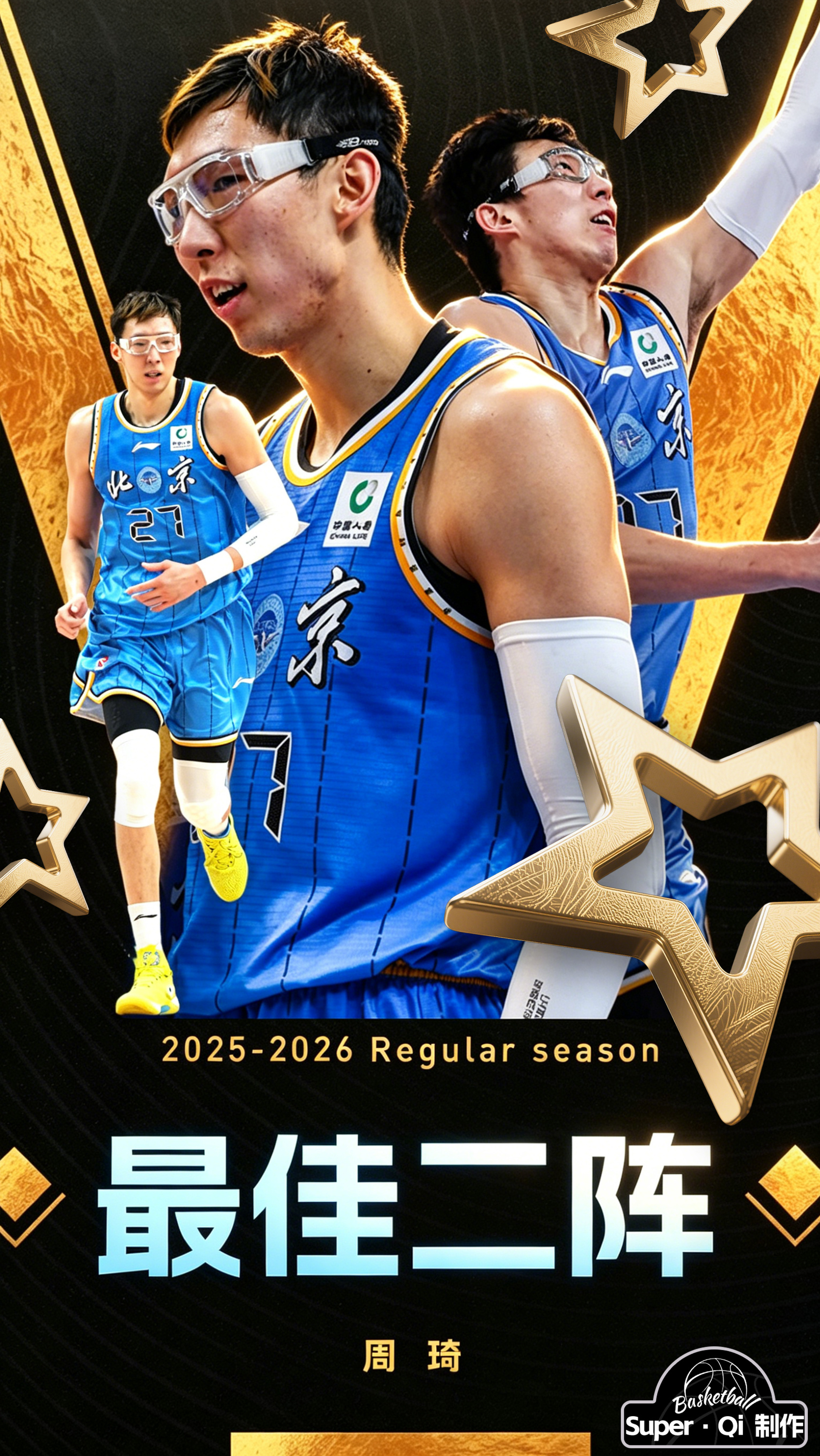 北京首钢男篮 CBA最佳阵容陈盈骏 一阵周琦 二阵!周琦除了罚球拉跨,其他数据都是顶配,不清楚怎么选的这次cba 评选除了最佳阵容以外,他评选都比较合理CBA常规赛奖项公布 图片来源于
