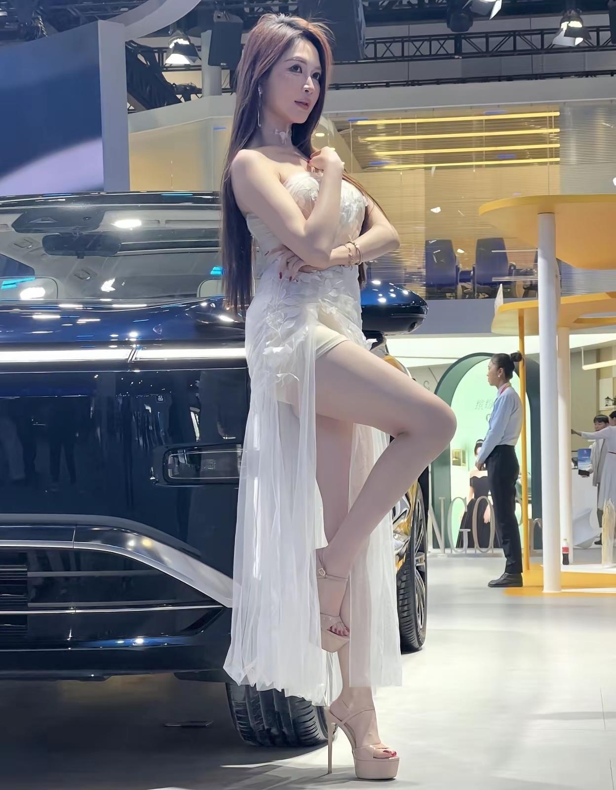 4月26日,车模兽兽继续参加北京车展,特地换了一身白色的束腰裙子,可是从背影看虎