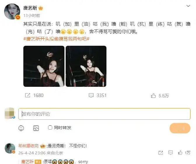 何宣林微博道歉说对不起,唐艺昕回三个字“没什么”,我当场被暖哭。