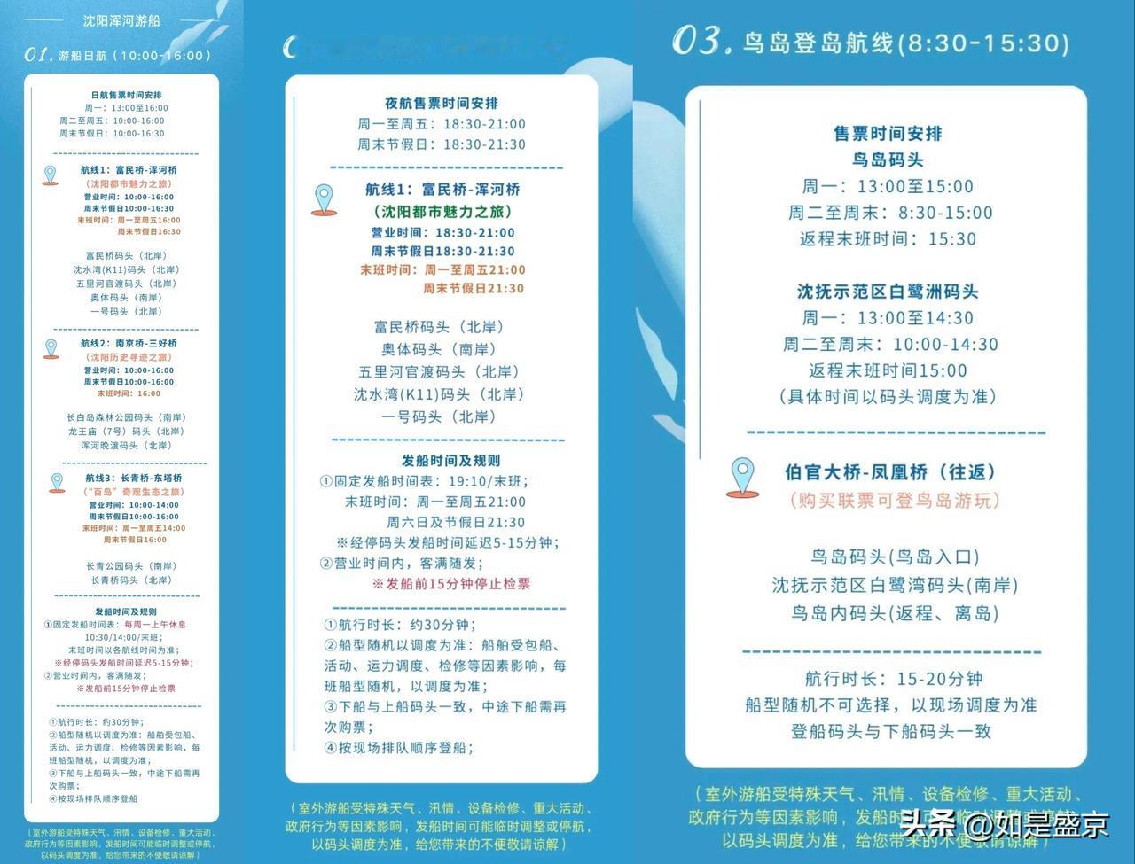 航线覆盖富民桥、浑河桥、南京桥、长青桥等多个点位,还开通了鸟岛登岛航线,能近距离打卡自然生态美景。