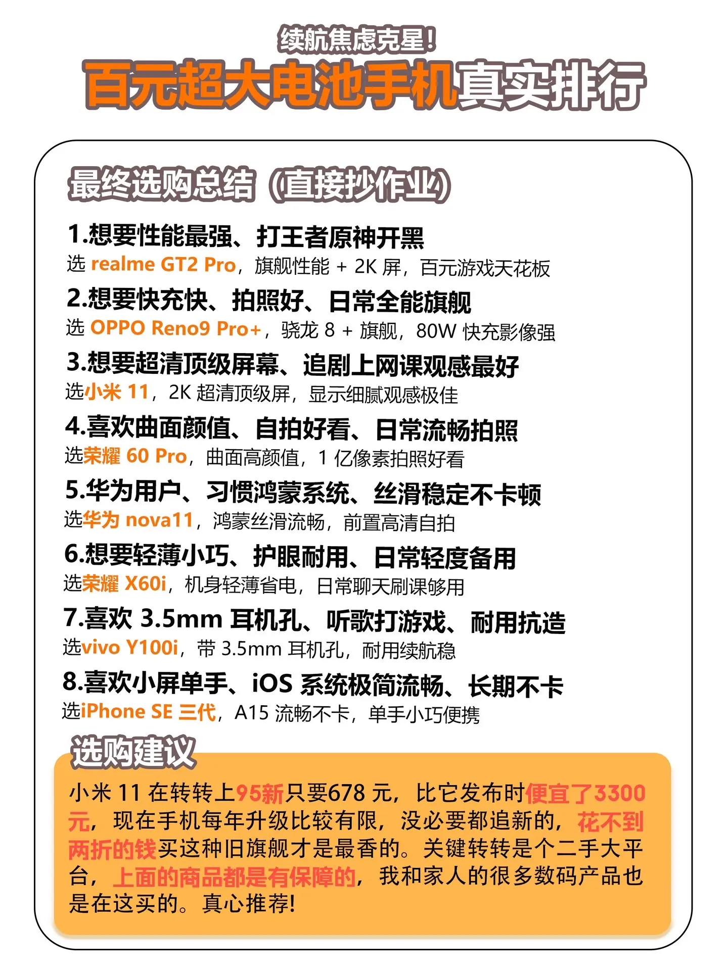 百元超大电池手机真实排行。