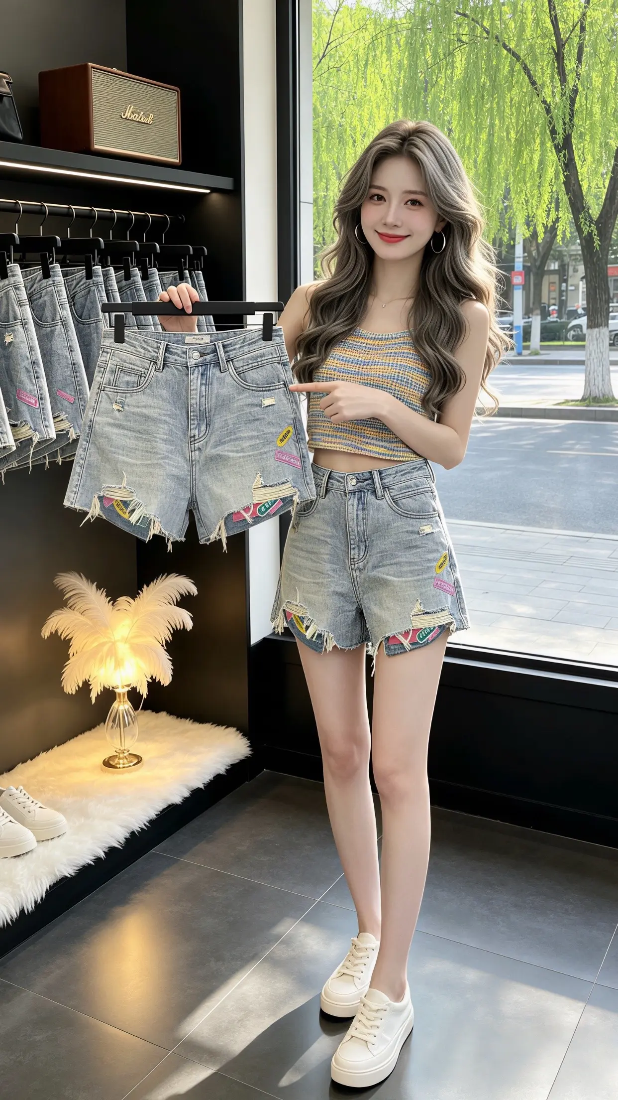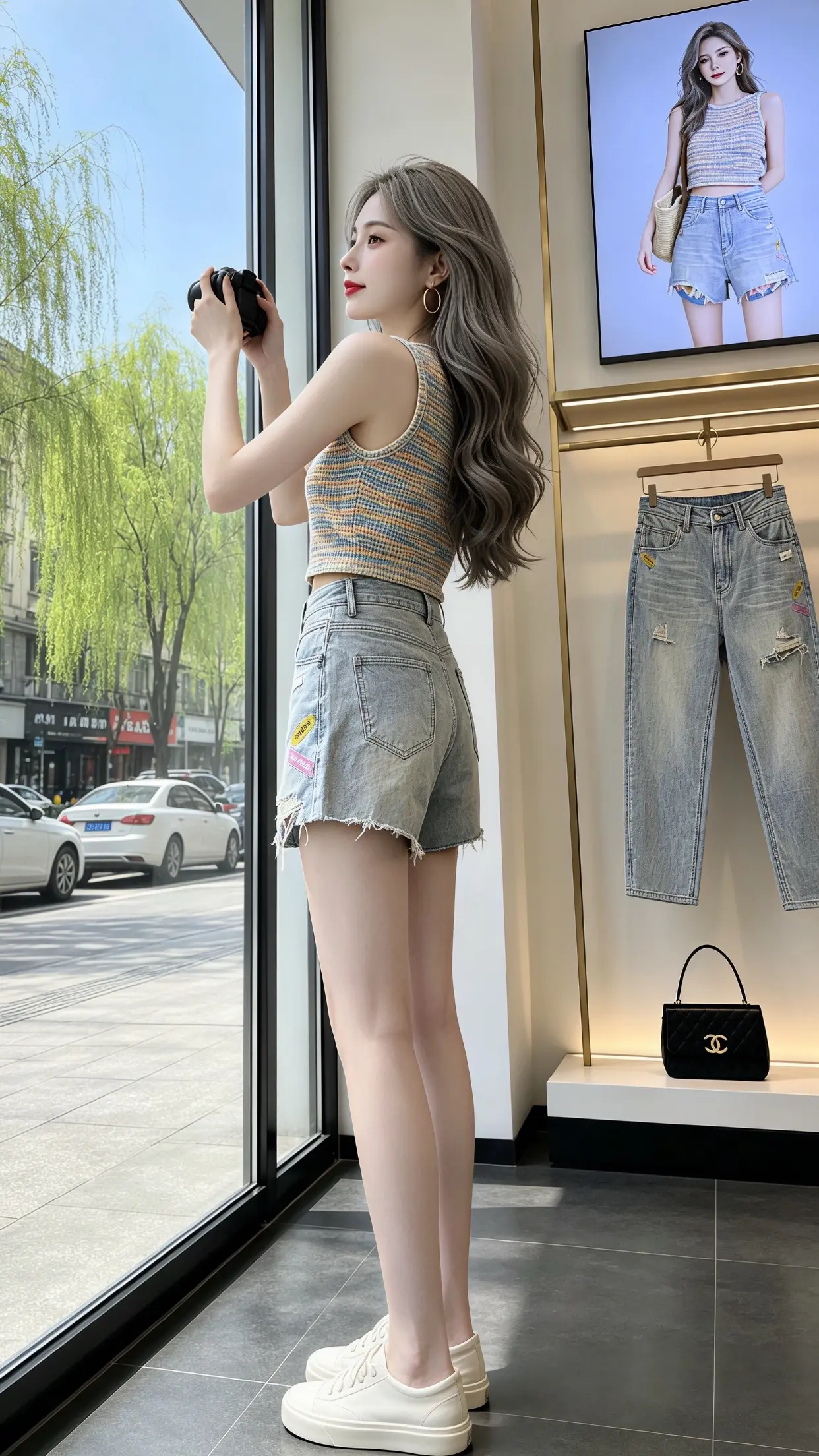 夏日穿搭指南:牛仔短裤+V领针织衫,轻松出街!🌞👗👖穿搭