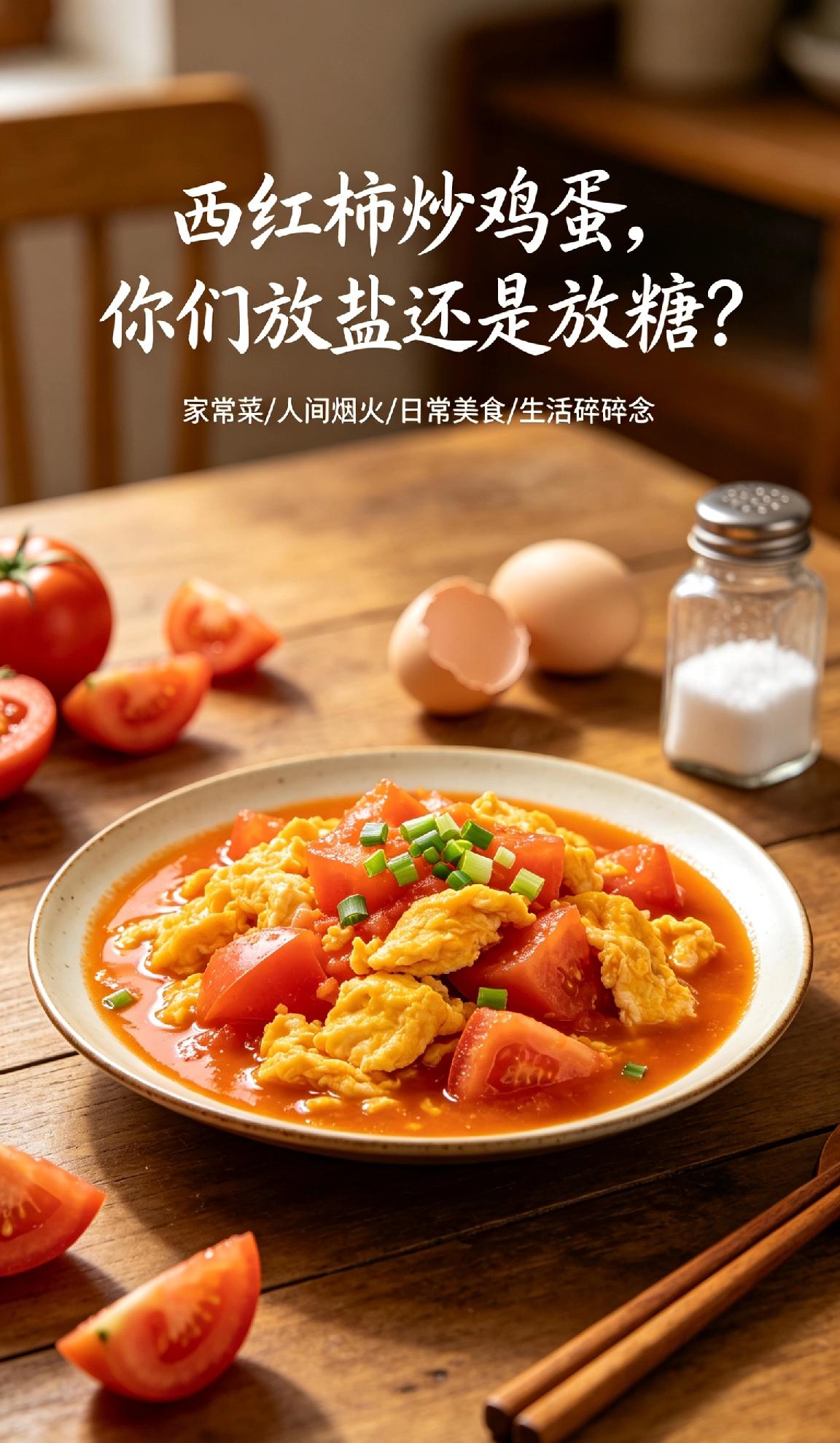 西红柿炒鸡蛋,你们放盐还是放糖?