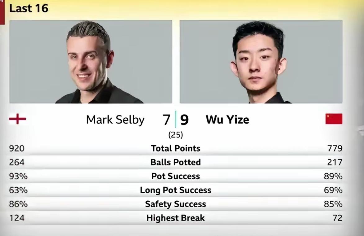 总分与进球数:塞尔比虽然总得分(920)比吴宜泽(779)高,但这是因为他打了更多的局数且防守缠斗多;吴宜泽在9局里进了217个球,效率并不低。