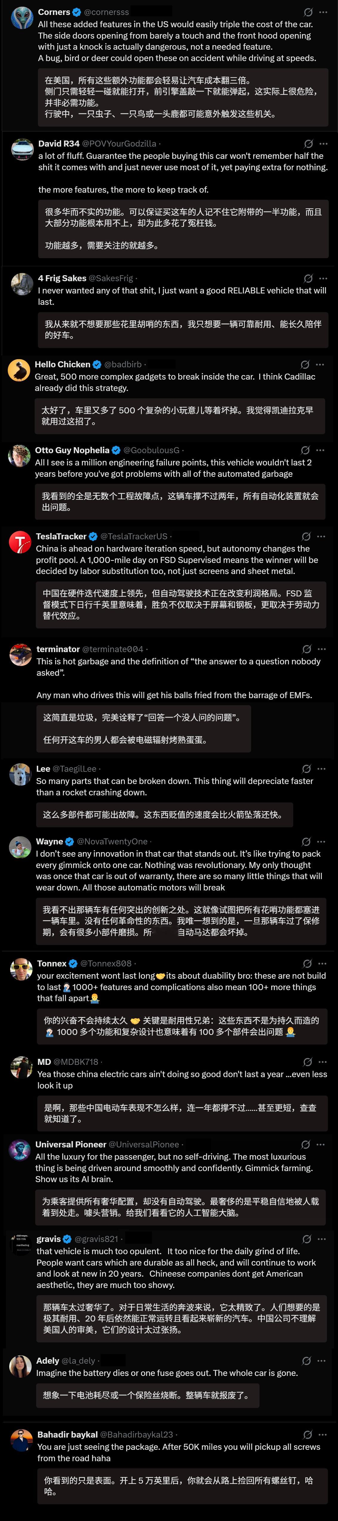 🔻网友分享:事实上,这是一些美国网民对中国新能源车的看法。🔻山猪吃不来细糠,