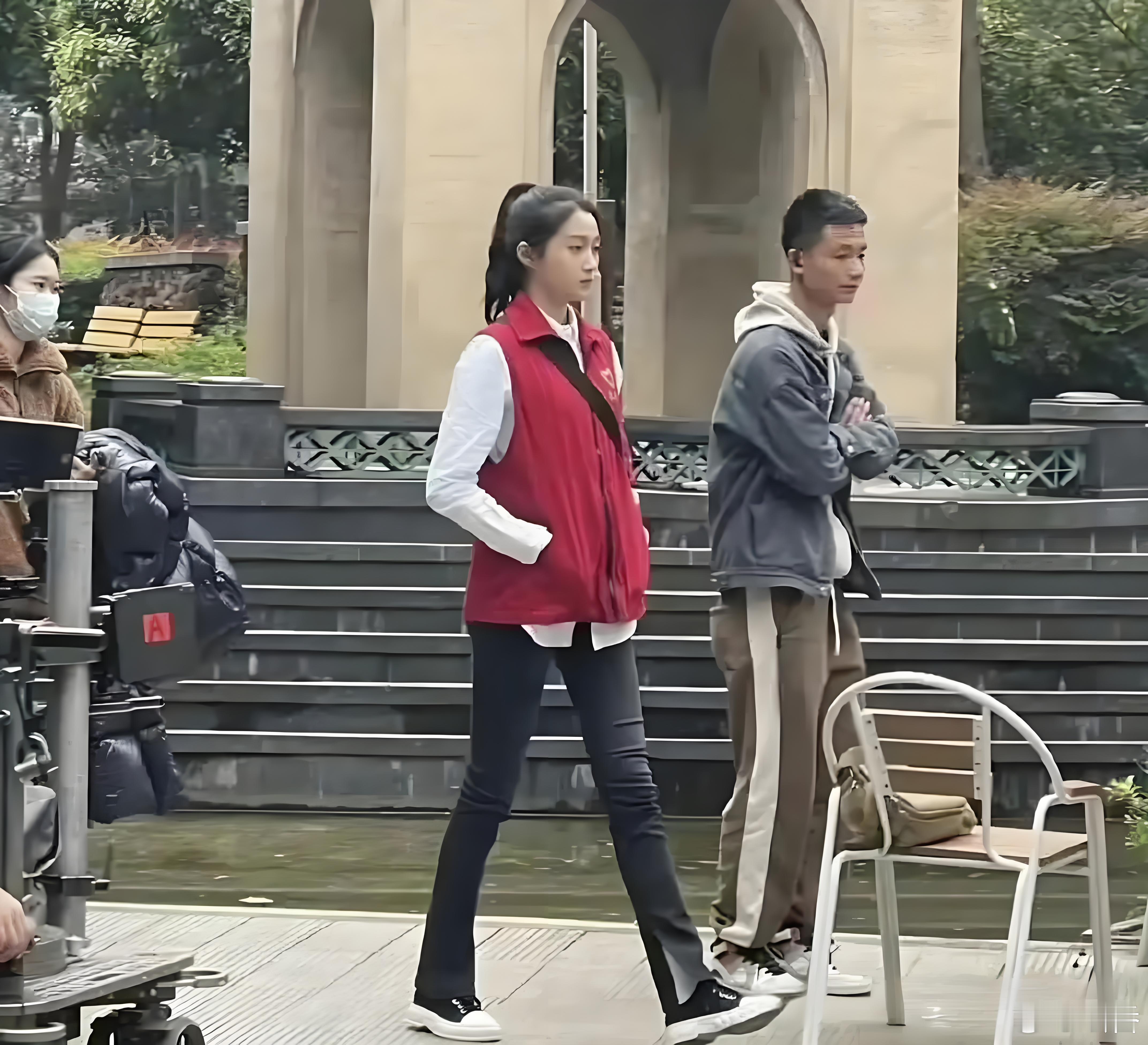 关晓彤和韩东君这真的是正儿八经1.72和1.82的身高差,一样的平跟运动鞋,都没