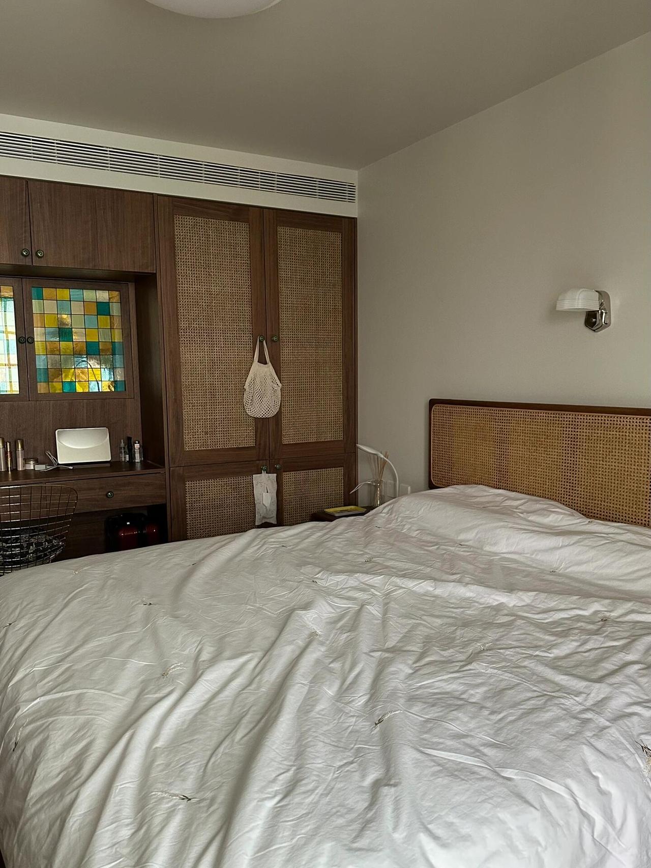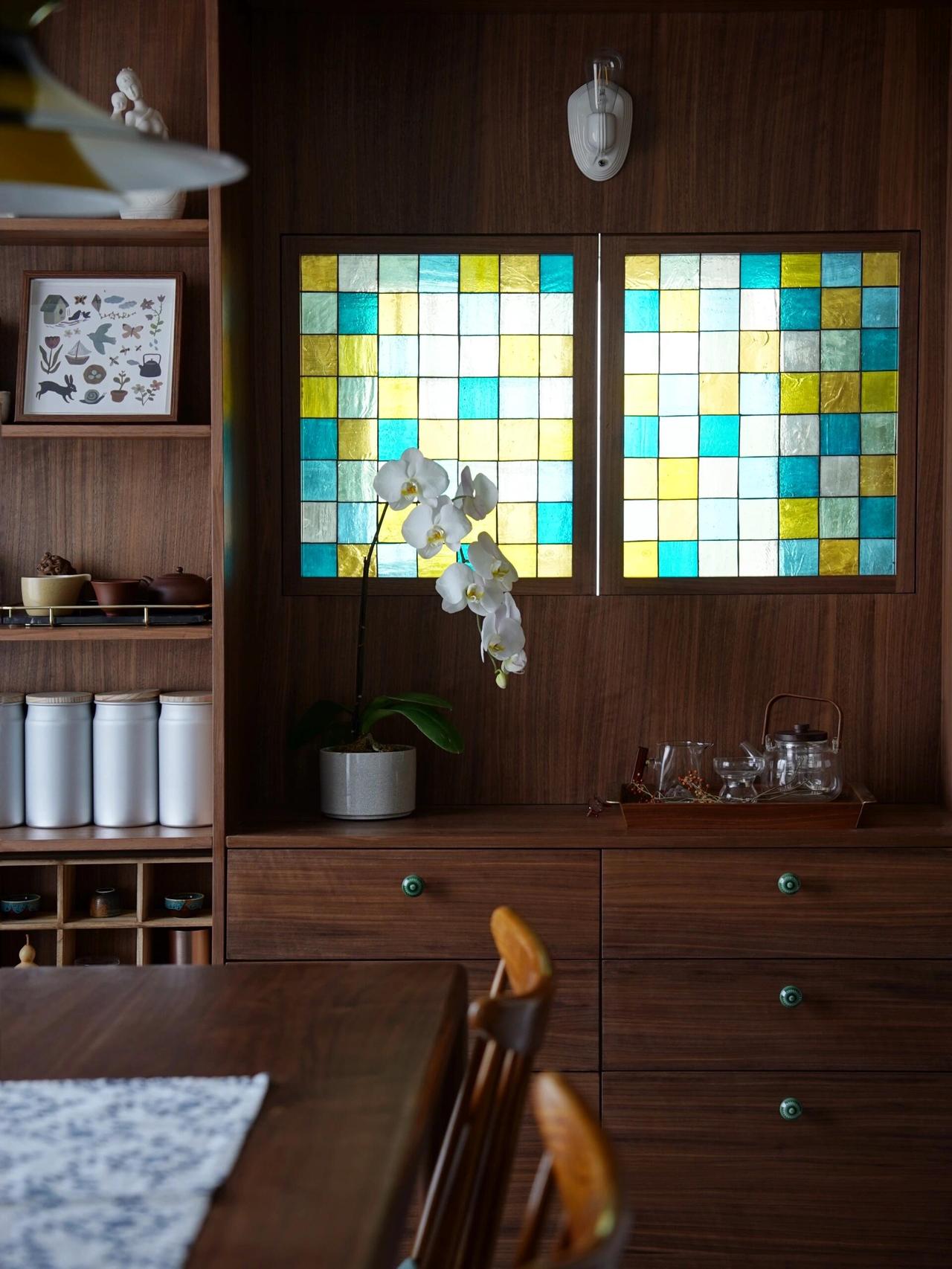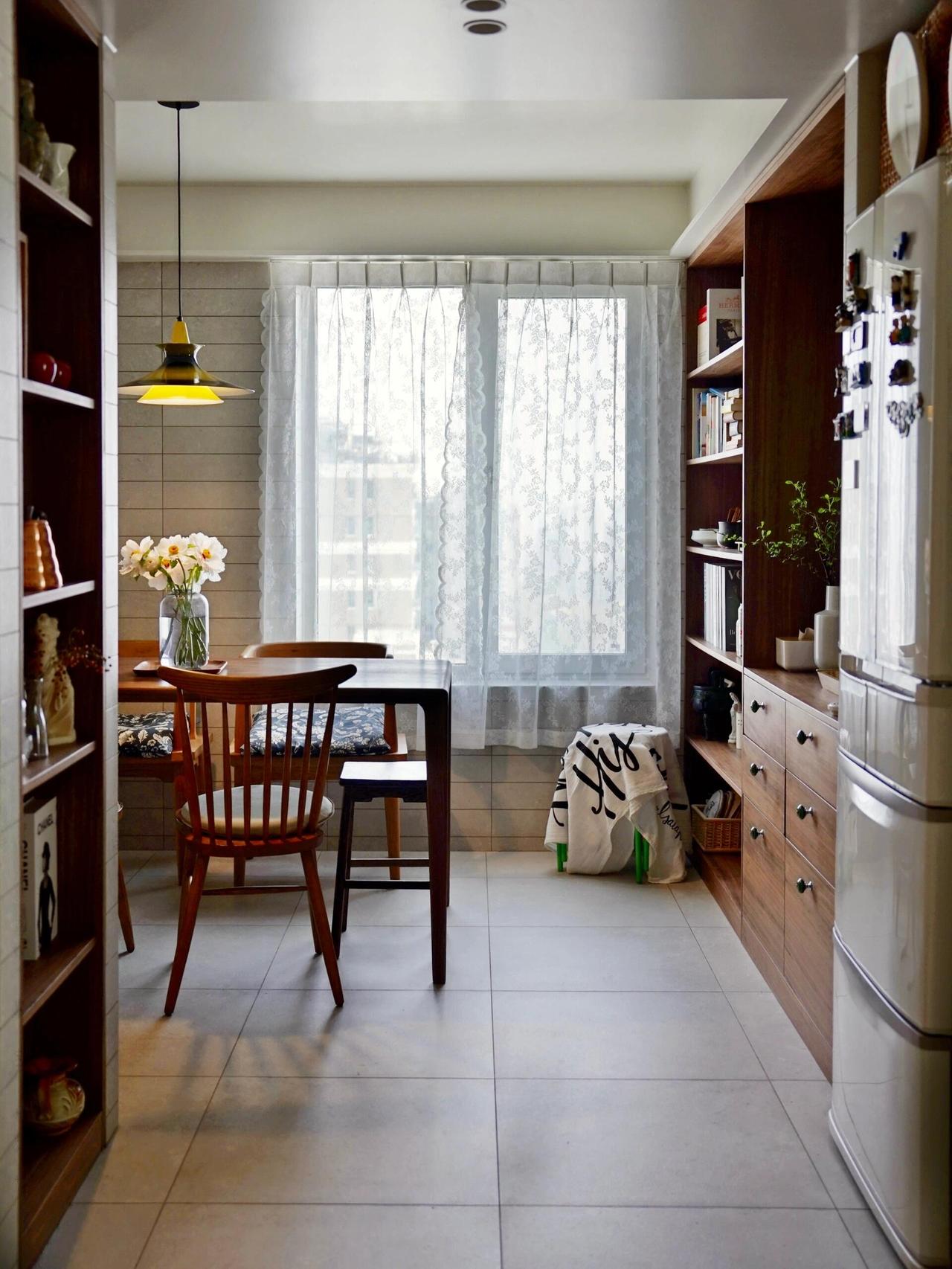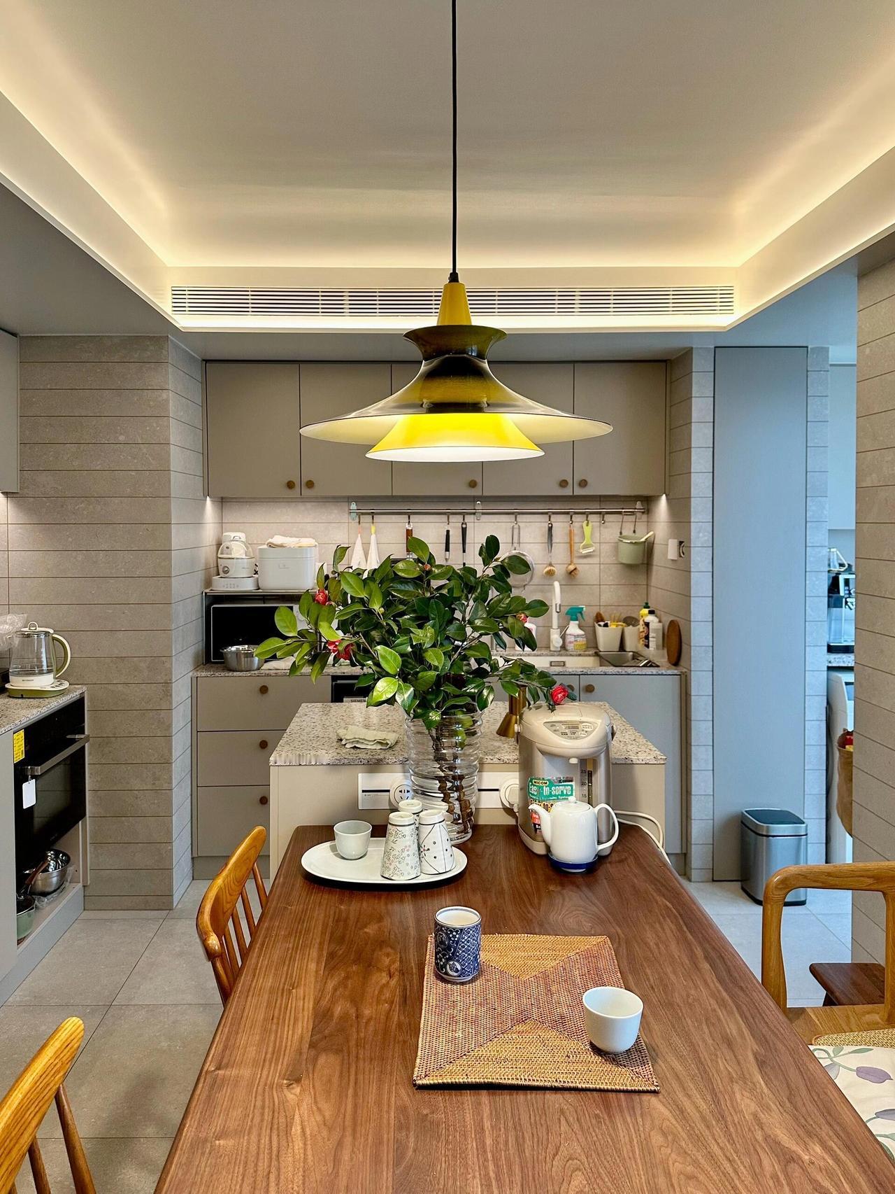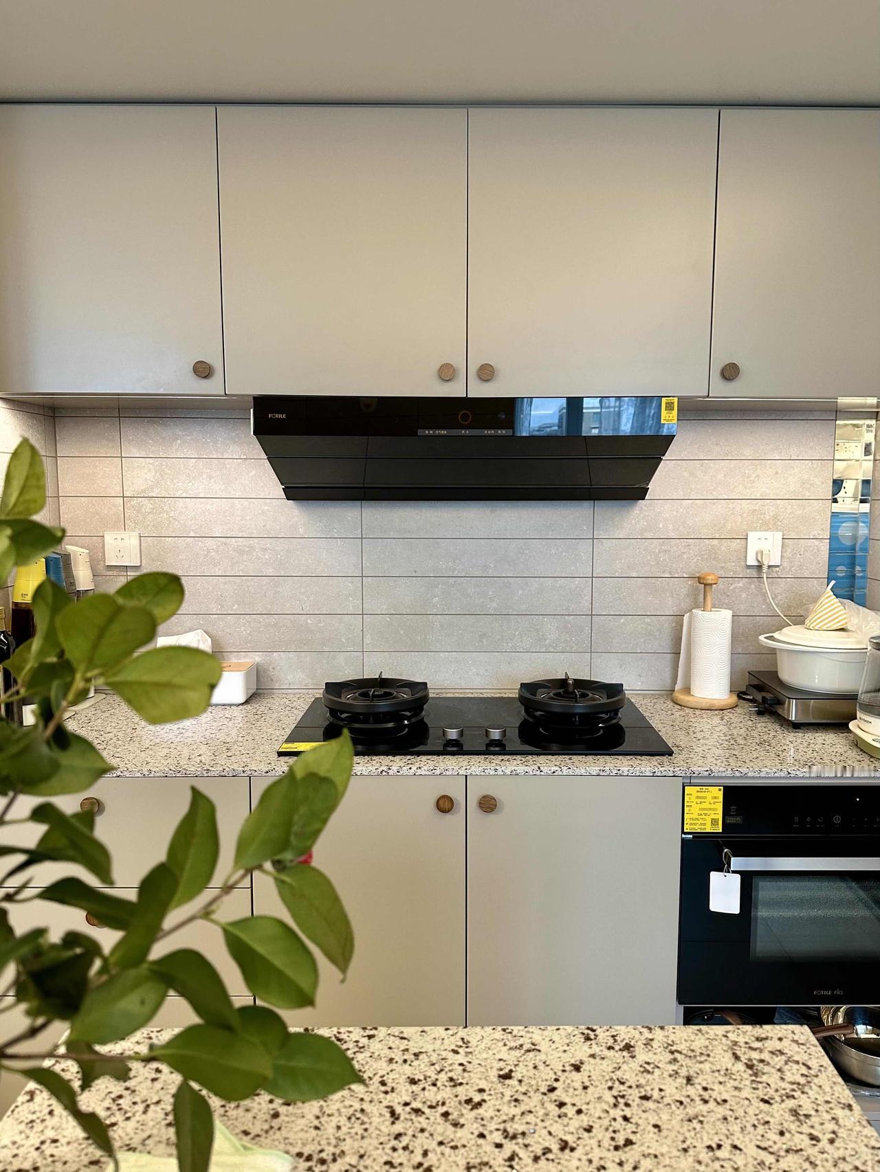 这套房子有十几个年头了,父母们旧物件不舍扔老习惯改不掉,本就不大的家里堆得到处都是没用的东西,原来厨房又小又挤,母亲弯腰做饭时连转身都费劲,装修时她把厨房和次卧之间的墙拆掉,改成开放式,再加一张大桌子,本来逼仄的房子一下子敞亮了,一家人能一起做饭、聊天、吃饭。