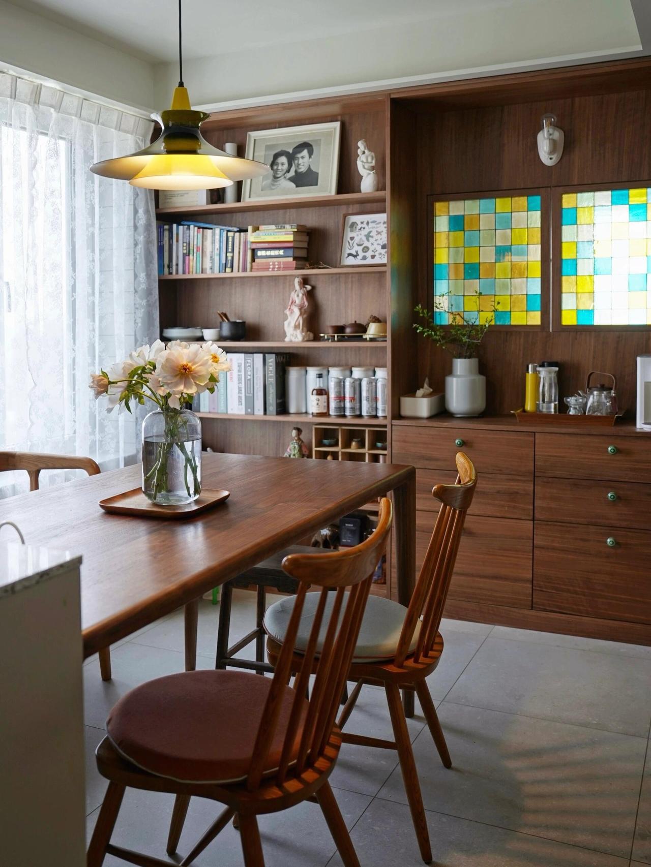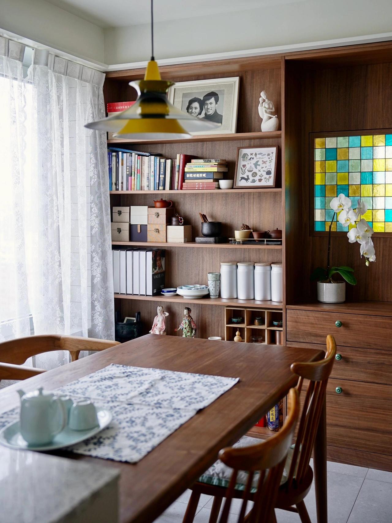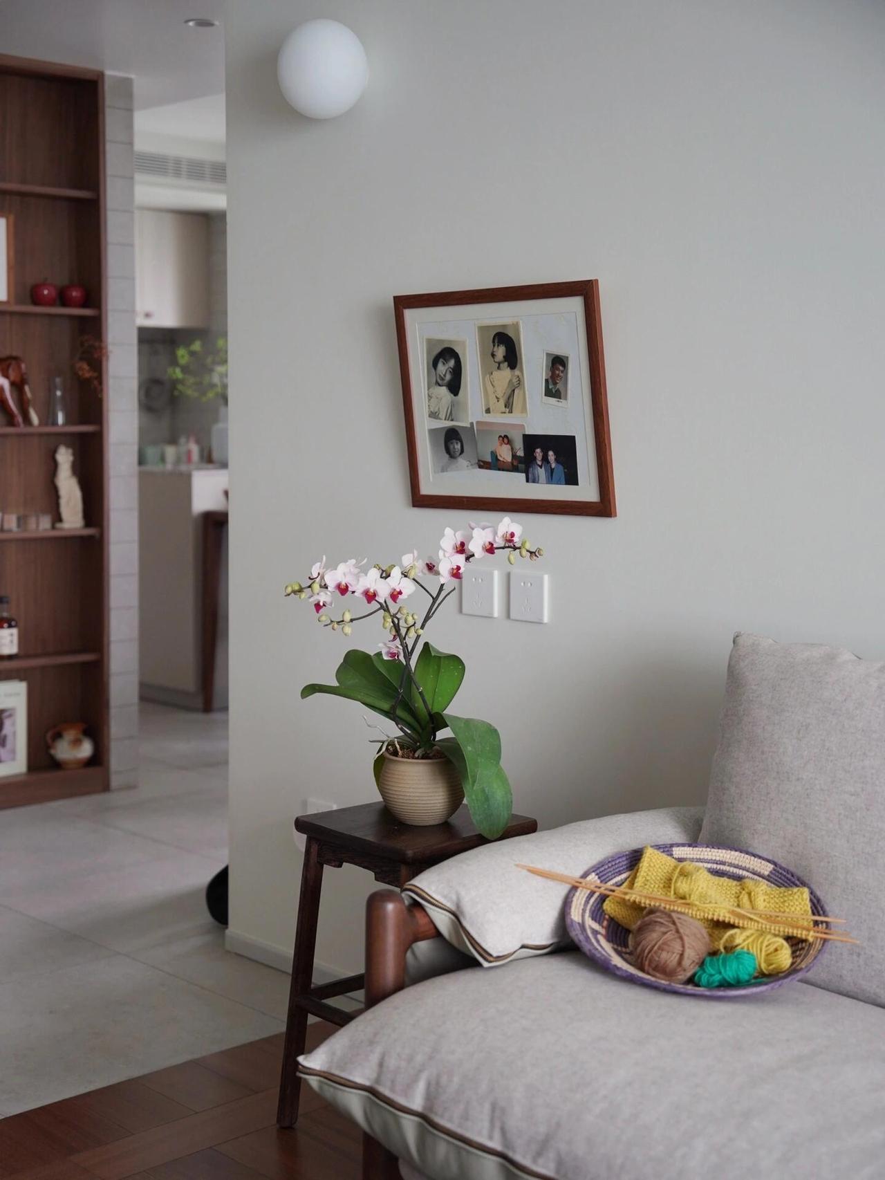 最后出来的效果,不是时下流行的,是那种老式的实木家具、棕色调子,干净到发亮,母亲把家里老照片、旧物件都翻出来摆上,反而有种岁月沉淀的味道。