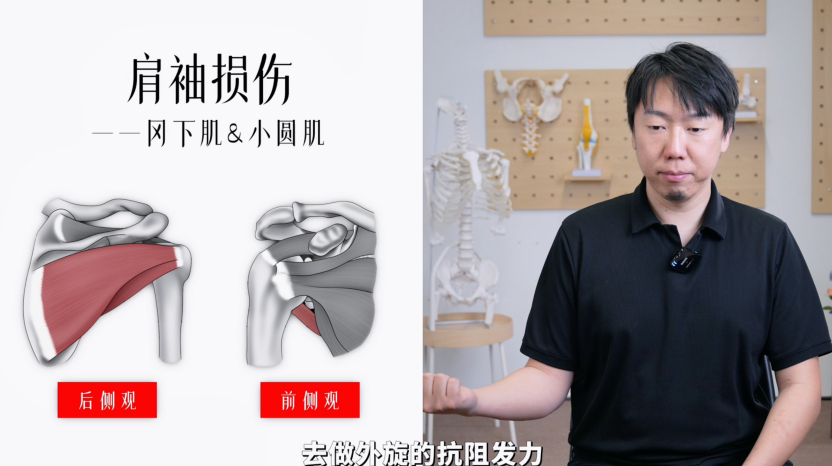 2、肩袖损伤——某一个点/某个动作刺痛——某一个角度活动度受限——抬肩/上举动作弹响——年轻人/运动爱好者居多