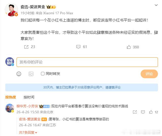 追觅CEO俞浩称小红书是烂平台【俞浩称小红书是一个烂平台】俞浩称小红书算法有意推