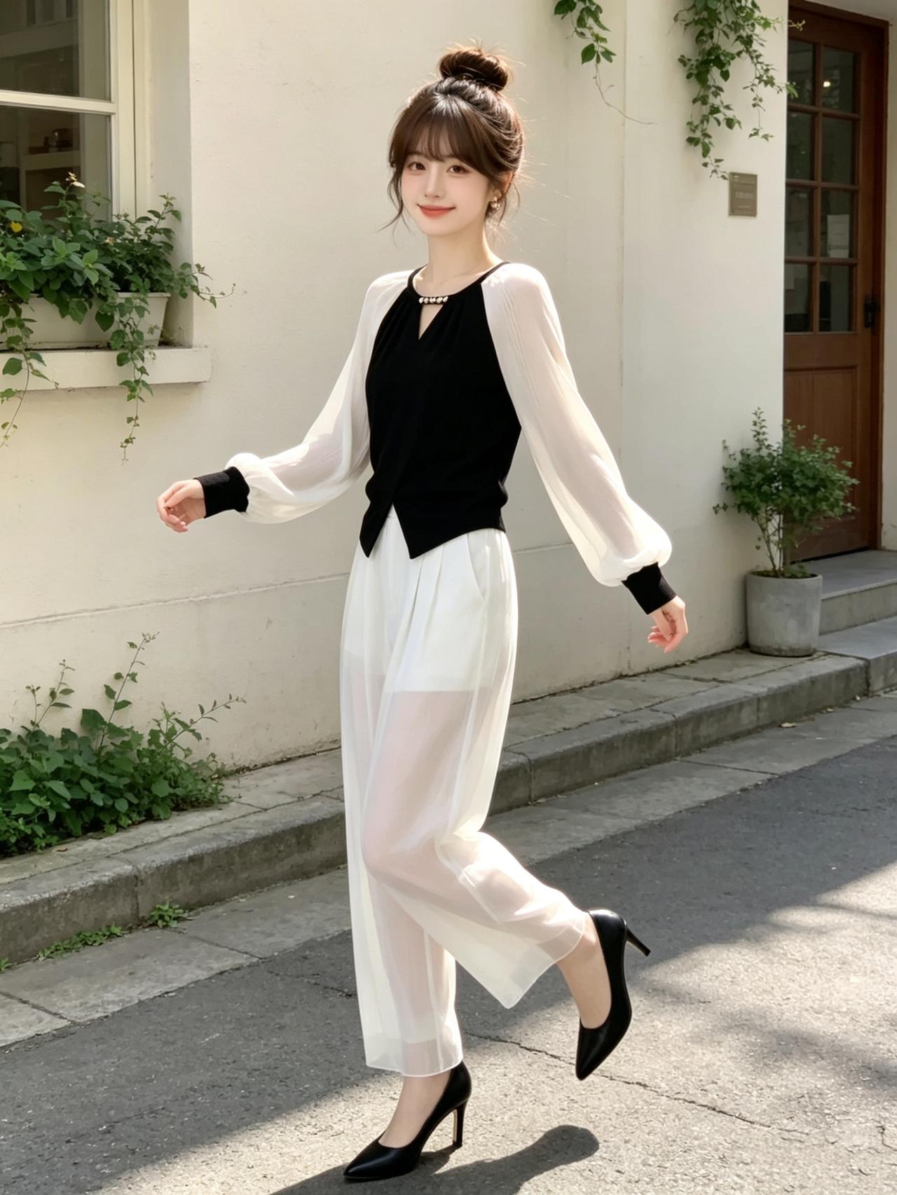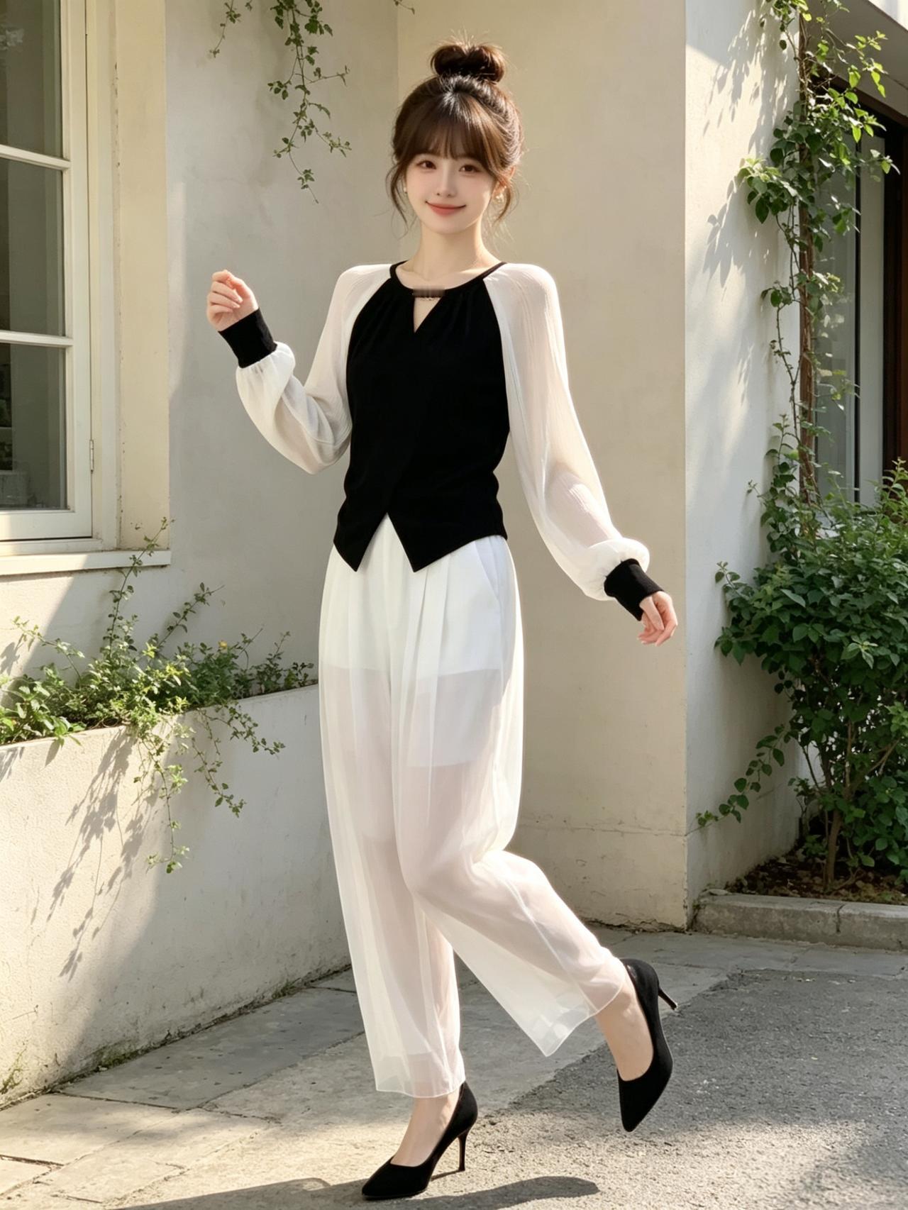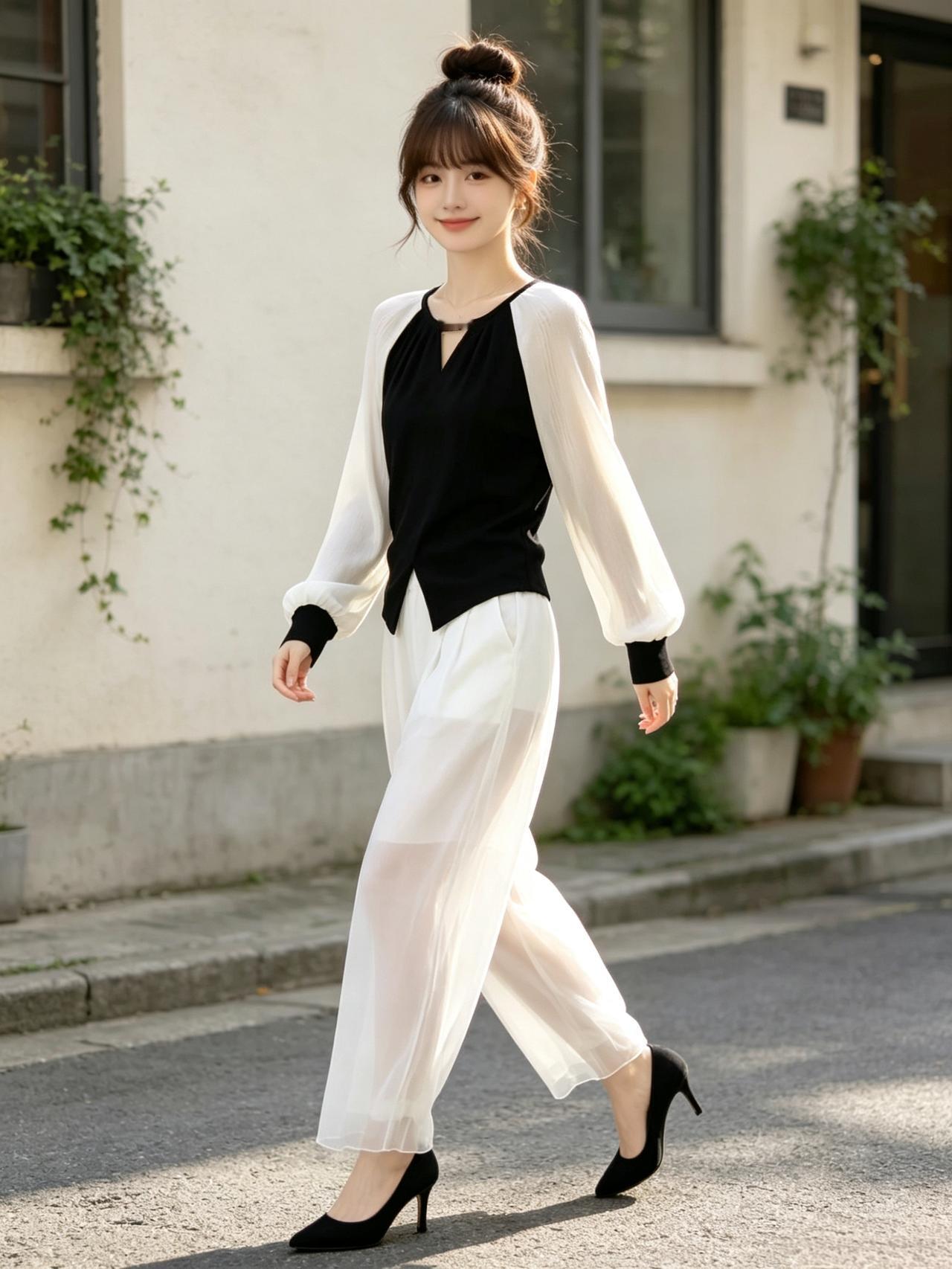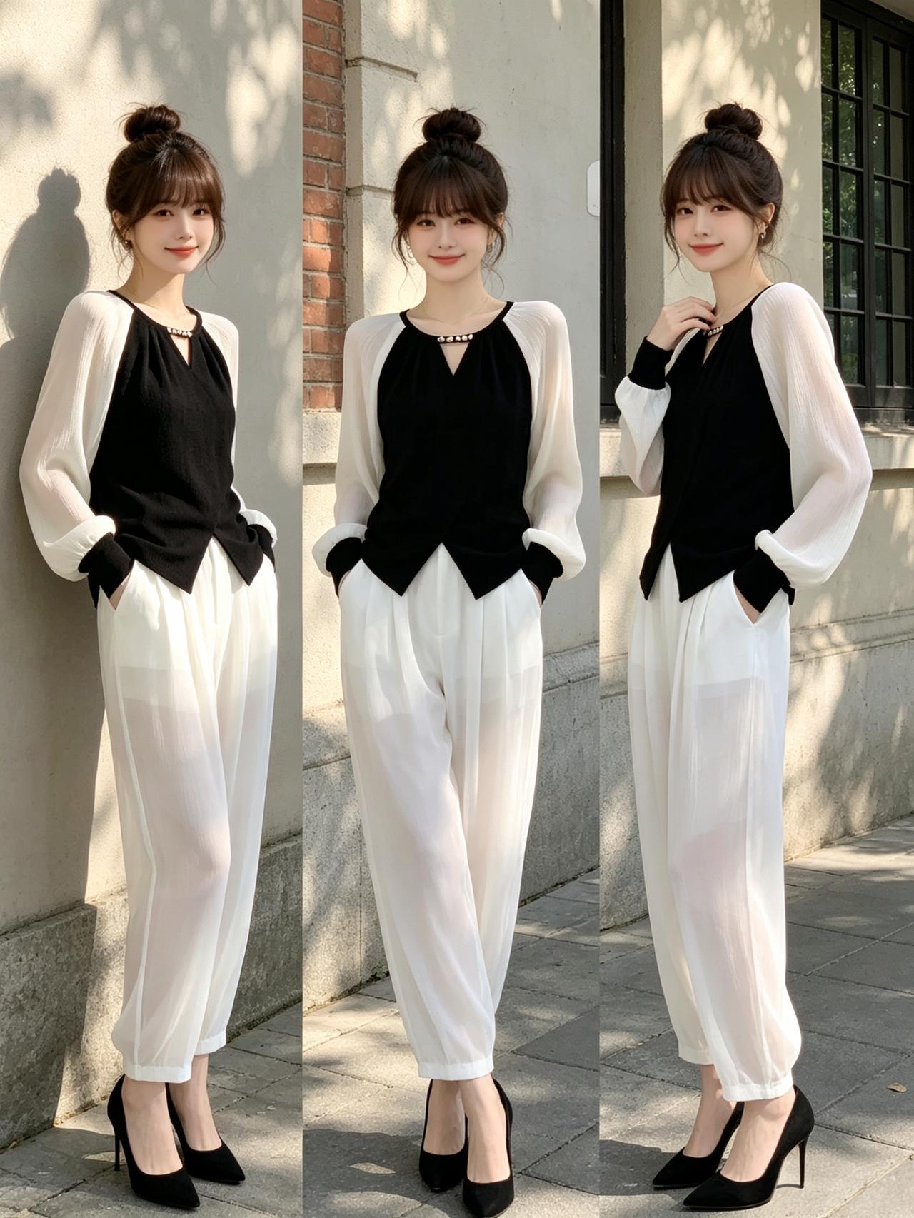 元气少女穿搭指南,黑白几何图案,时尚又百搭!👗👖👟优雅自信穿搭分享纯真少