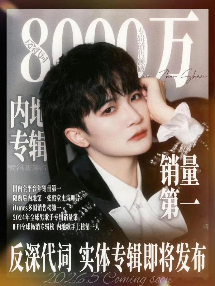 周深反深代词断层登顶内地第一周深歌顶就是这样牛 恭喜周深专辑《反深代词》销量突破8000w,在限购后数字专辑销售额断层登顶内地第一,周深歌顶就是这样牛 歌手2026