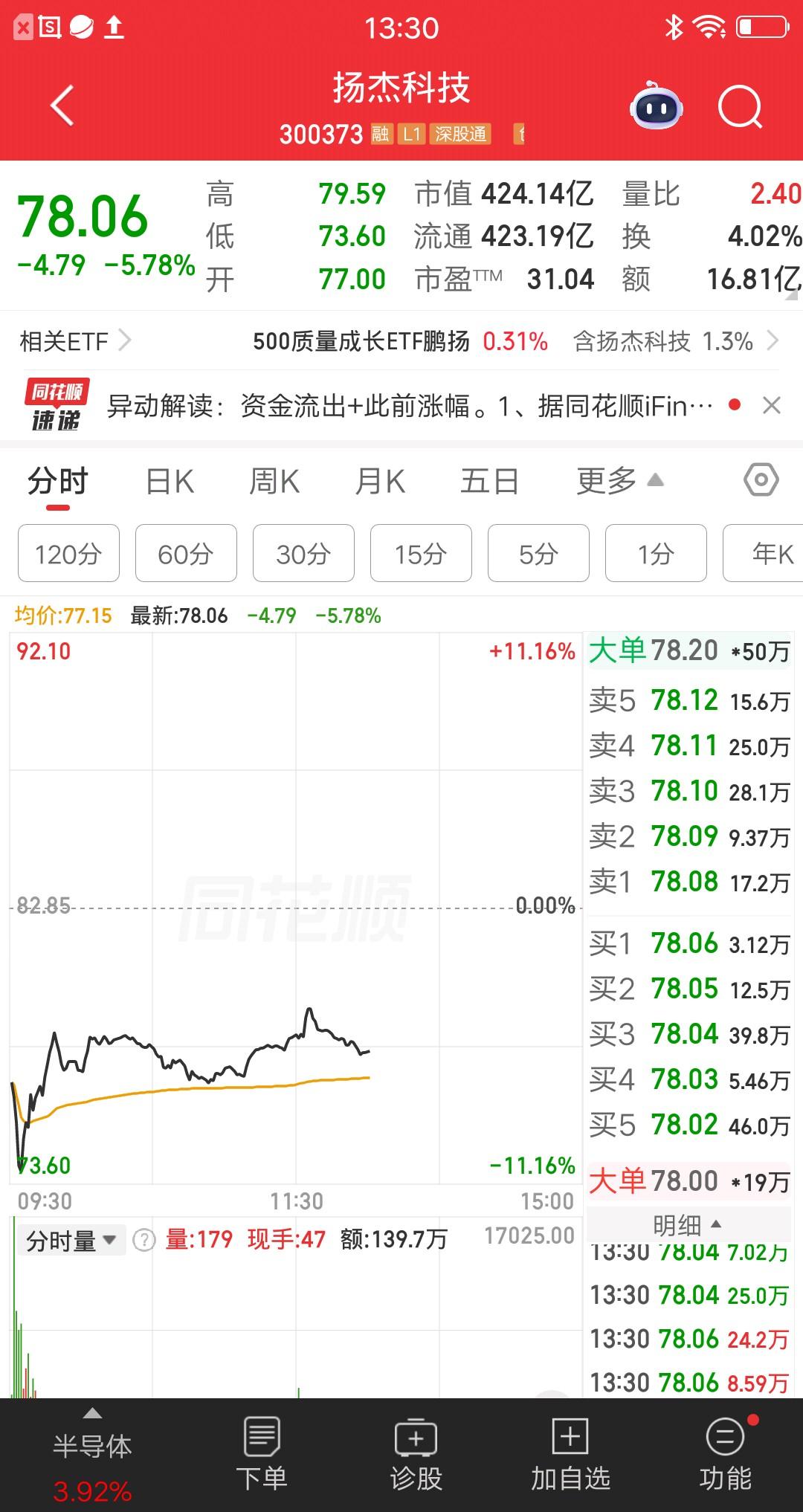 开盘后快速跳水,最大跌幅11个多点,好在股价被快速拉起,如果按死跌停就麻烦了。目前跌幅收窄,股价有企稳迹象。