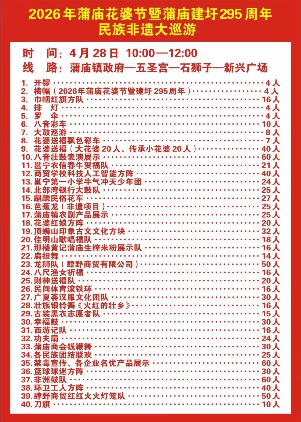 南宁蒲庙建圩295周年2026南宁花婆节4月28日10:00-12:00,南宁蒲