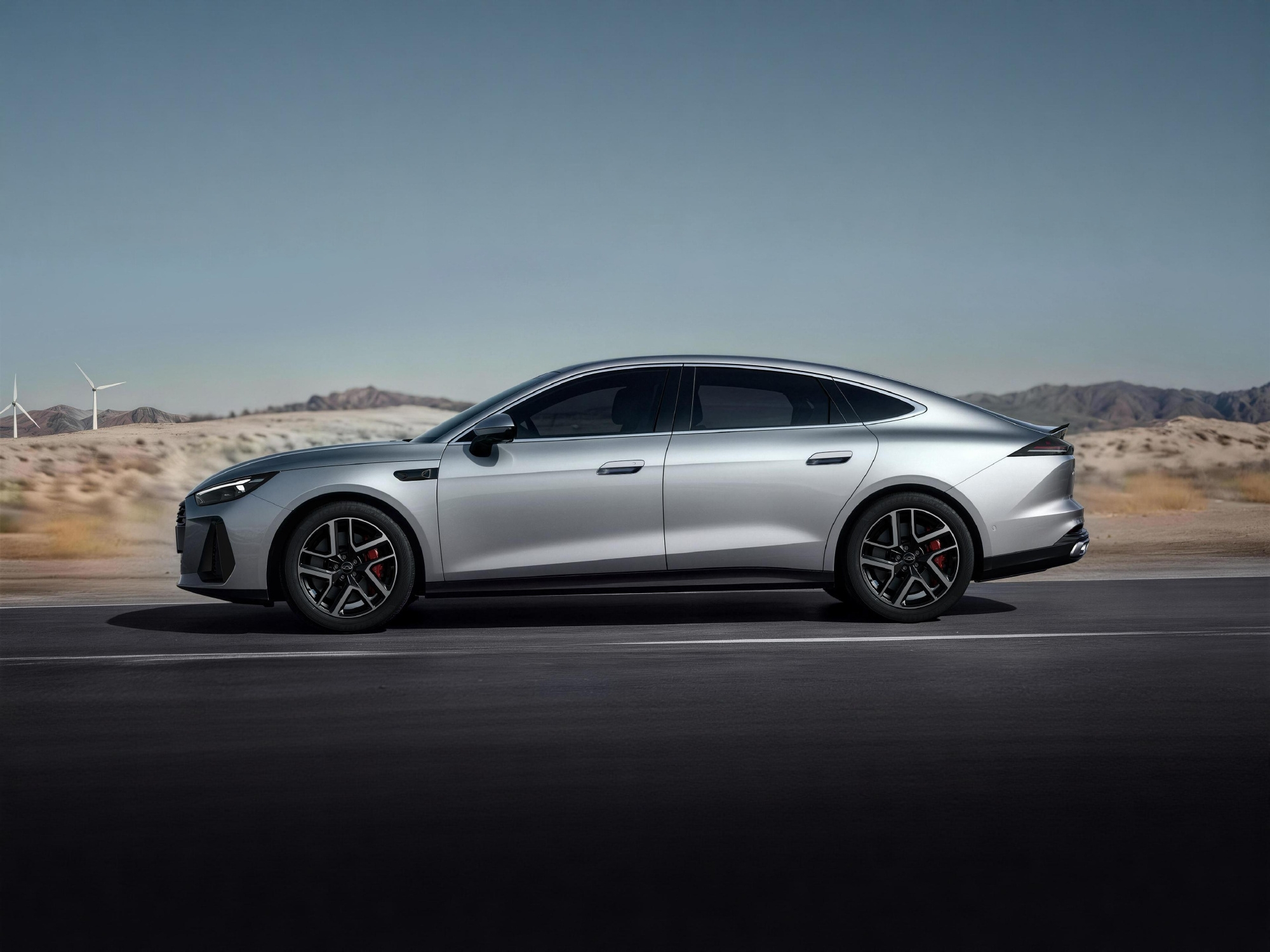 外观采用“风塑”理念,低趴轿跑姿态、半隐藏门把手、溜背尾部+贯穿灯,运动感强烈;内饰则走自主路线:环抱座舱、双辐方向盘、全液晶仪表、悬浮中控屏+机械旋钮,辅以氛围灯、木纹与镀铬点缀,精致度不俗。