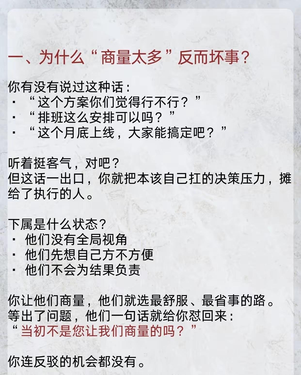 千万不要和下属“过度的商量”
