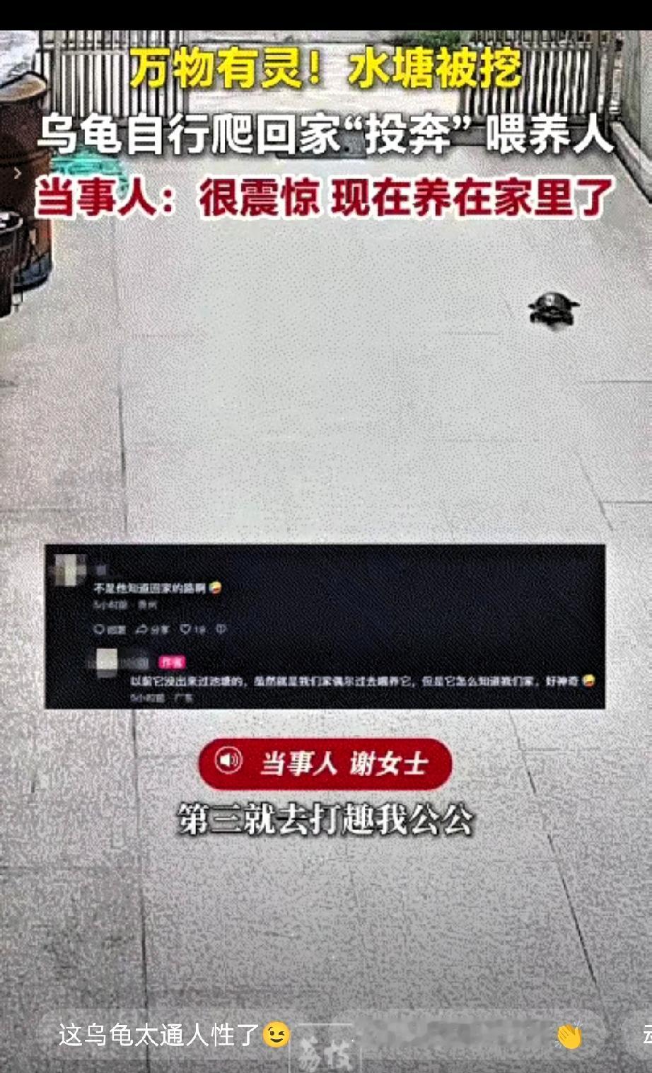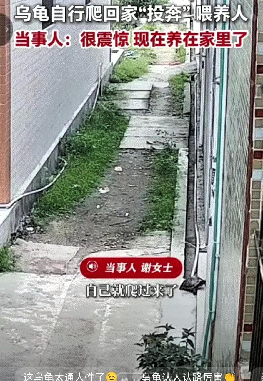 近日,广东汕头一只野生乌龟从废弃废墟中爬出,它从未踏足过人类家门,却一路目标坚定,精准爬到常年投喂它的老人家门口。