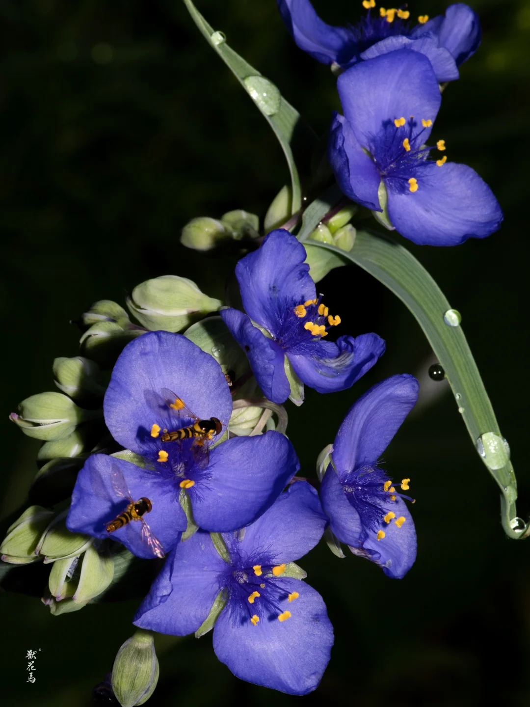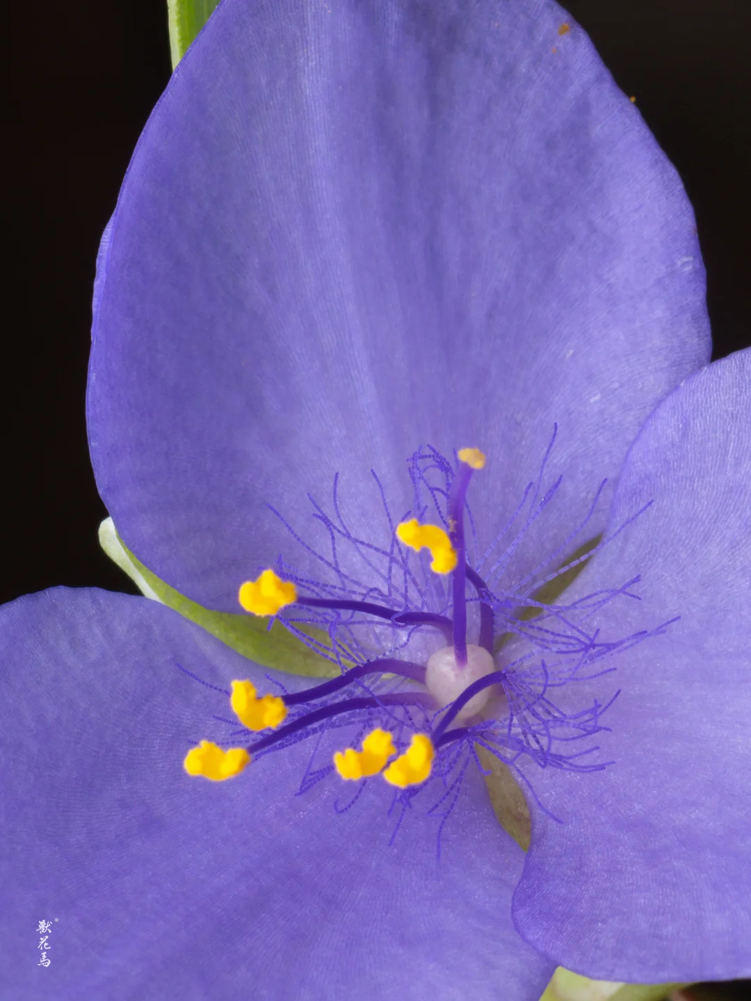 ✨三片宽大柔嫩的蓝紫色花瓣,中心鲜黄花药点缀,形如轻盈蝴蝶