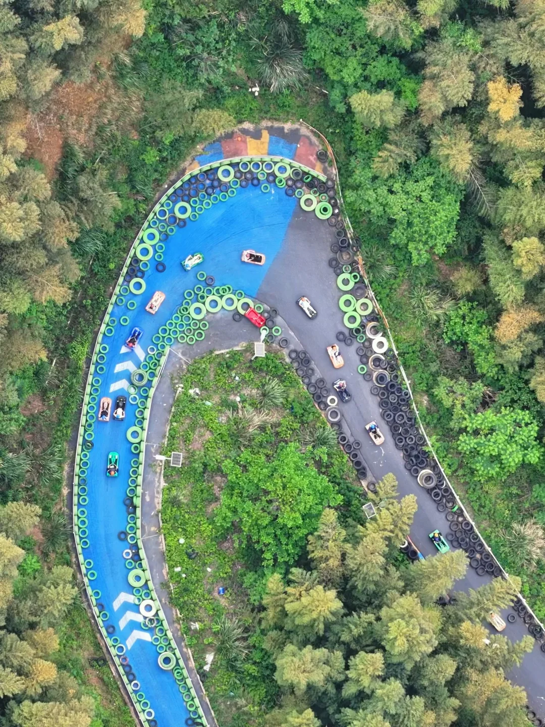 色彩斑斓的滑道藏在山野间,趣味性十足的同时,ci激又解压