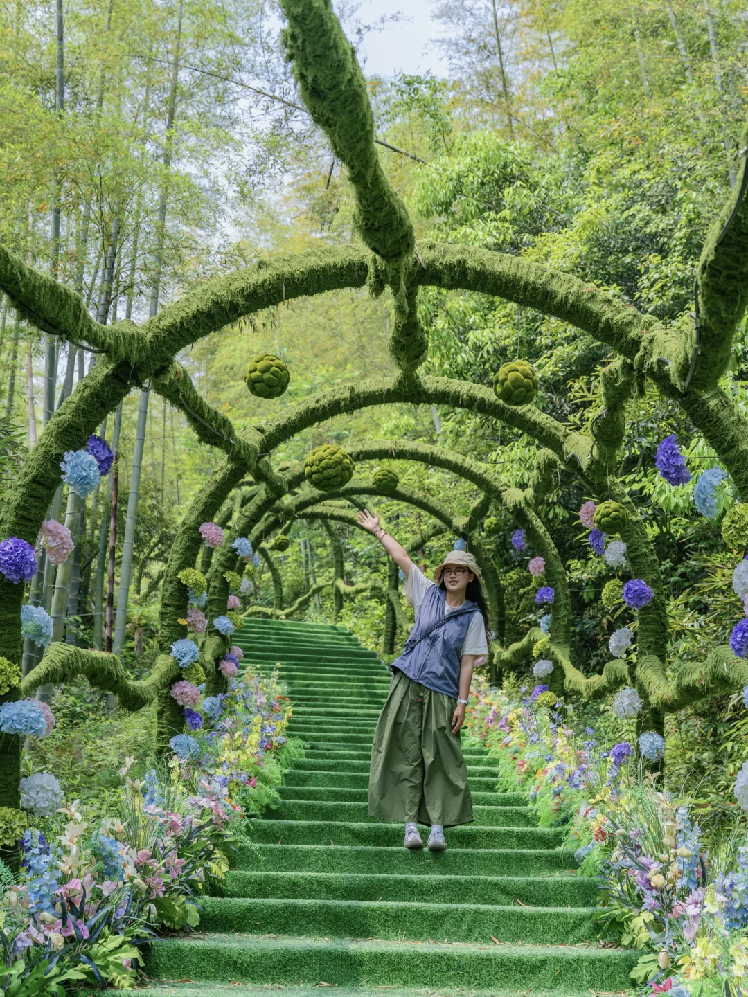 站在观景台上能将整个乐园的风光尽收眼底,脚下是连绵竹海,远处是青山绵延,视野瞬间开阔