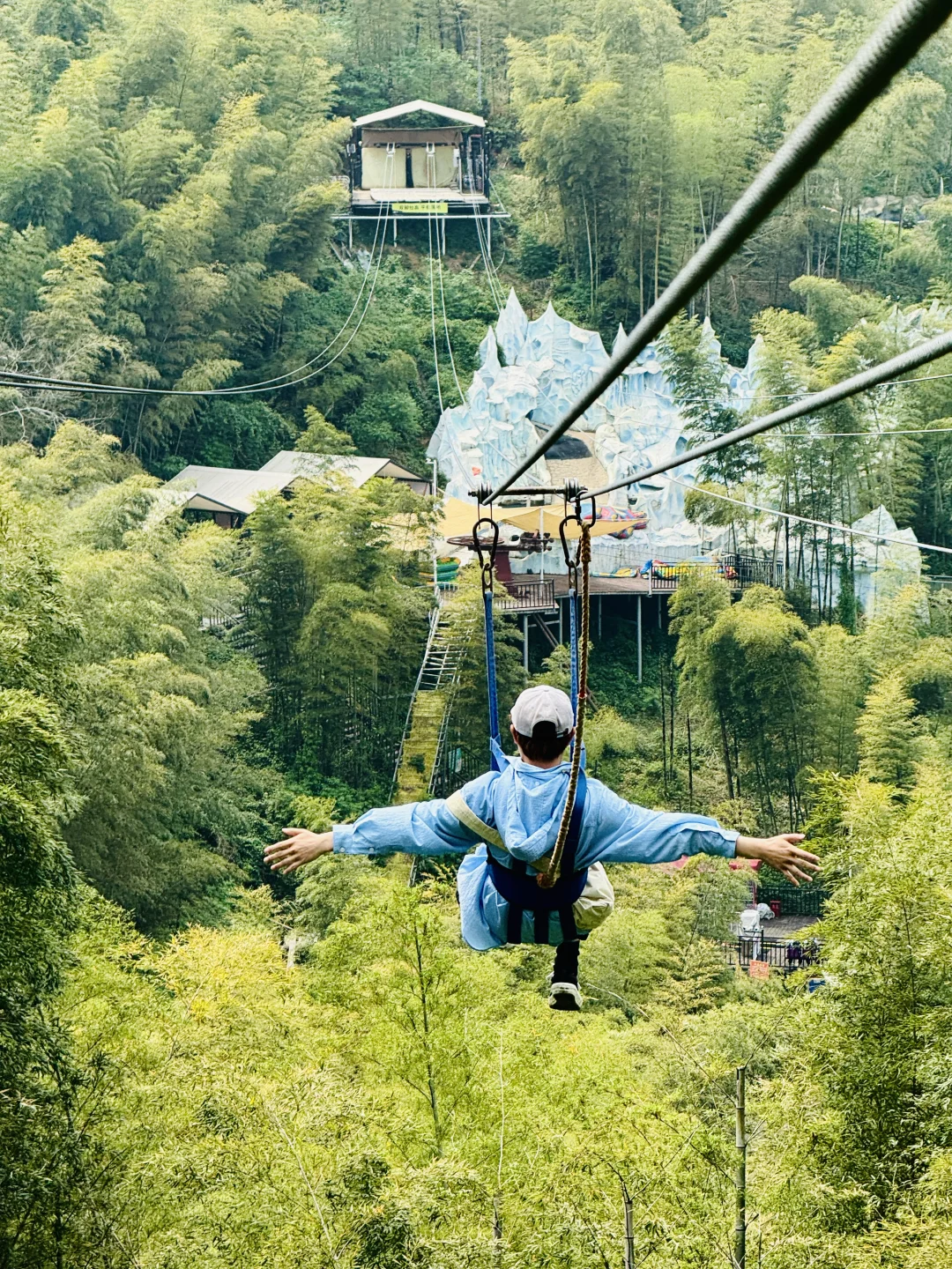 胆子大的一定要试!顺着滑索飞跃整片竹海,仿佛化身飞鸟穿梭在绿意之上,俯瞰竹海碧波