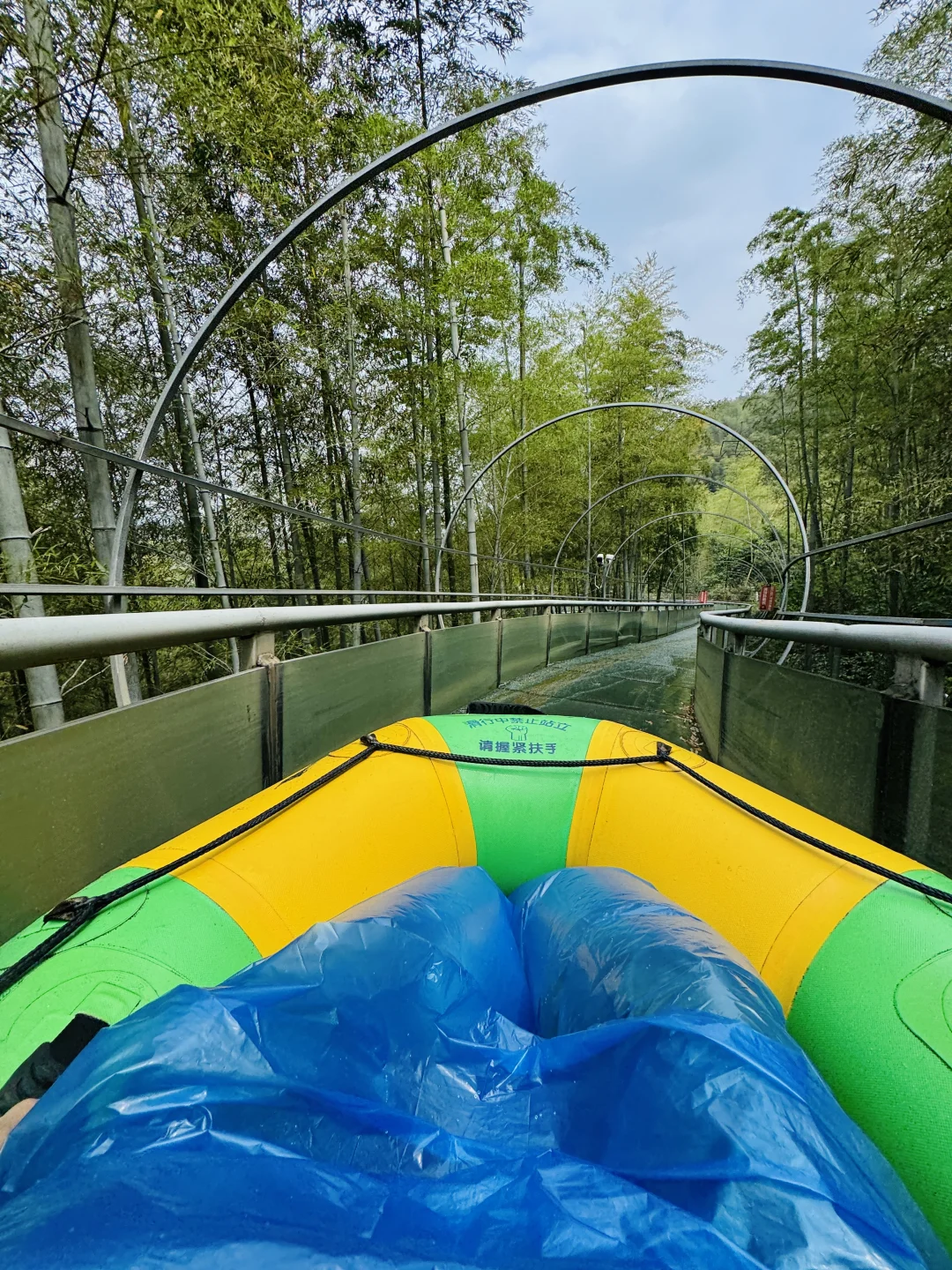 全长1200米的玻璃漂流滑道,盘旋穿梭在万亩竹海之中,既能感受漂流的快乐,又能被竹海的清新治yu