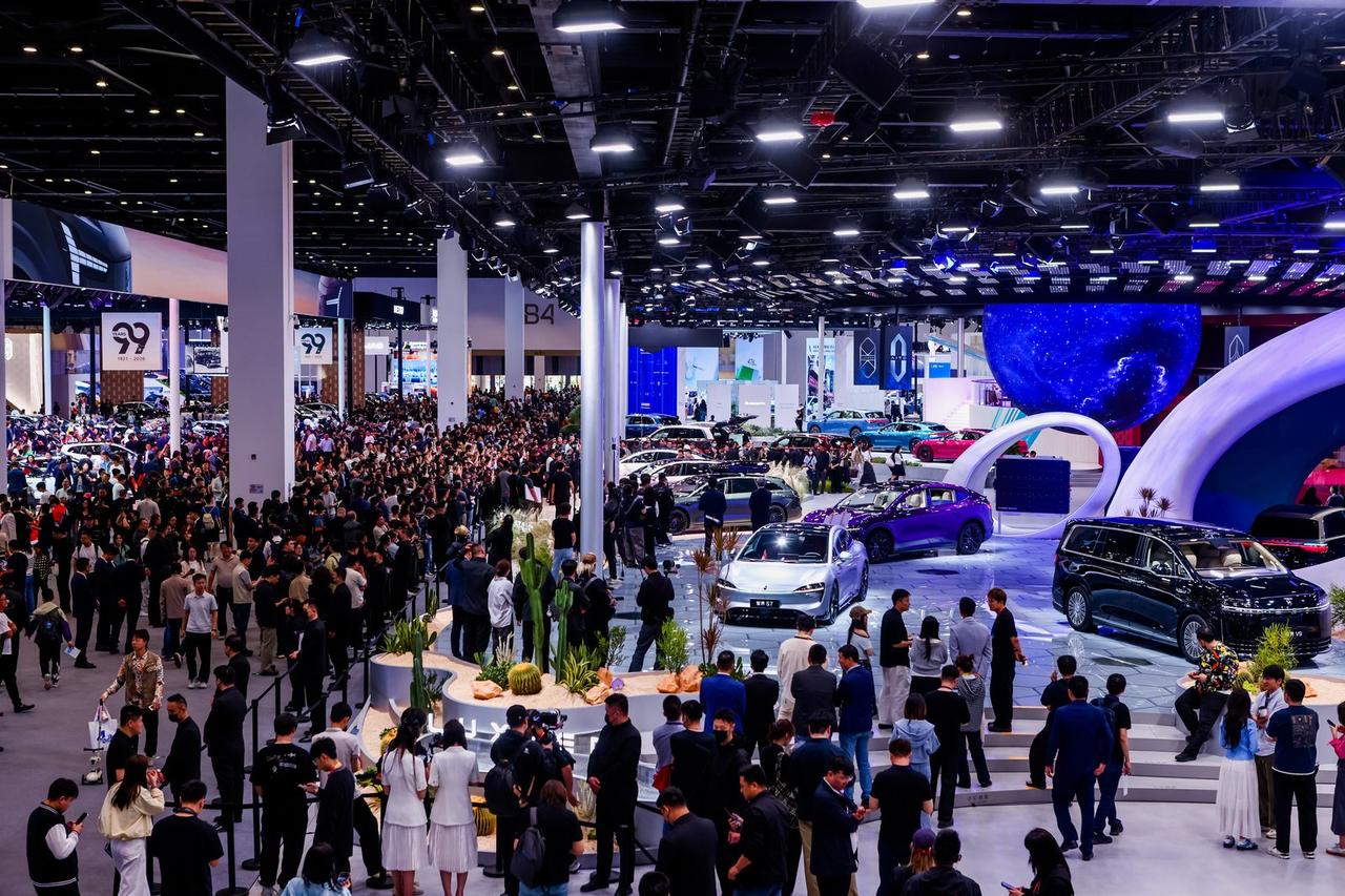 北京车展鸿蒙智行展台,五界车型各有分工。尊界S800上市10个月交付1.6万台,连续7个月蝉联百万级豪车销冠,下半年还将推出200万级旗舰新品。尚界Z7T猎装车首发,女性用户占比42%、首购用户40%,用设计语言回应年轻群体的情绪价值。问界M6上市24小时大定突破XX万台,年轻人购车比例近五成;全新问界M9搭载行业首发全车六激光雷达、华为乾崑智驾ADS 5、四把Hysoft座椅以及三款行业首发的投影配置,持续引领旗舰市场。享界S9T打开旅行车市场,70%来自传统豪华品牌增换购,连续6个月成为30万级新能源销冠。智界首款MPV V9亮相,旋转座椅、机械按摩、MOFs健康座舱打造顶级空间体验。五界协同,每一个细分市场都有对应产品,没有盲区。