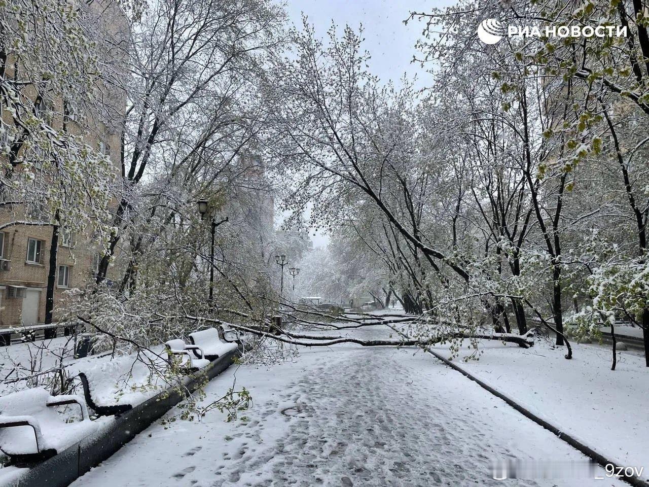 今天的莫斯科!四月飘雪 俄新社报道称,莫斯科遭遇暴风雪及阵性降雪,树木倒伏