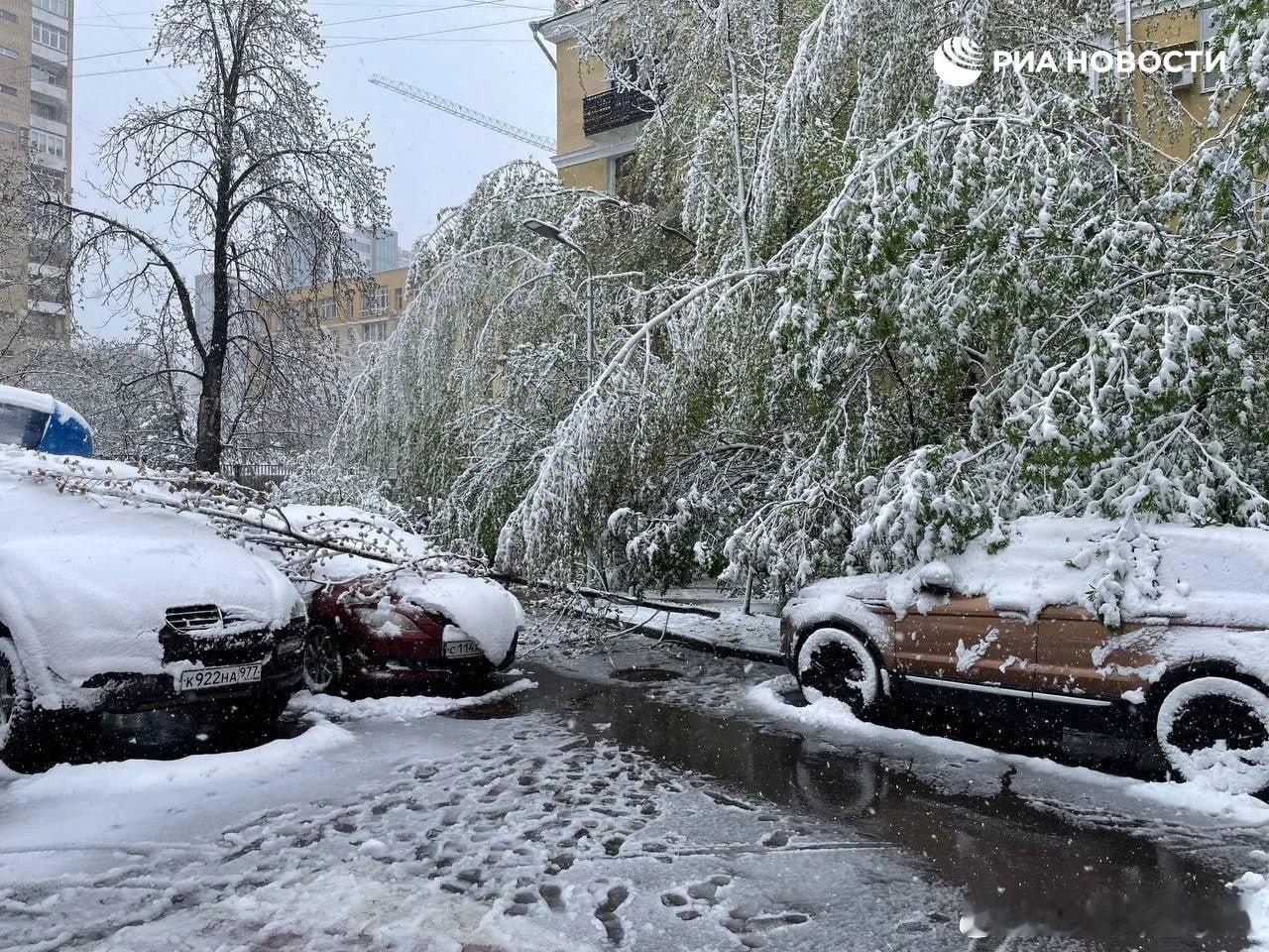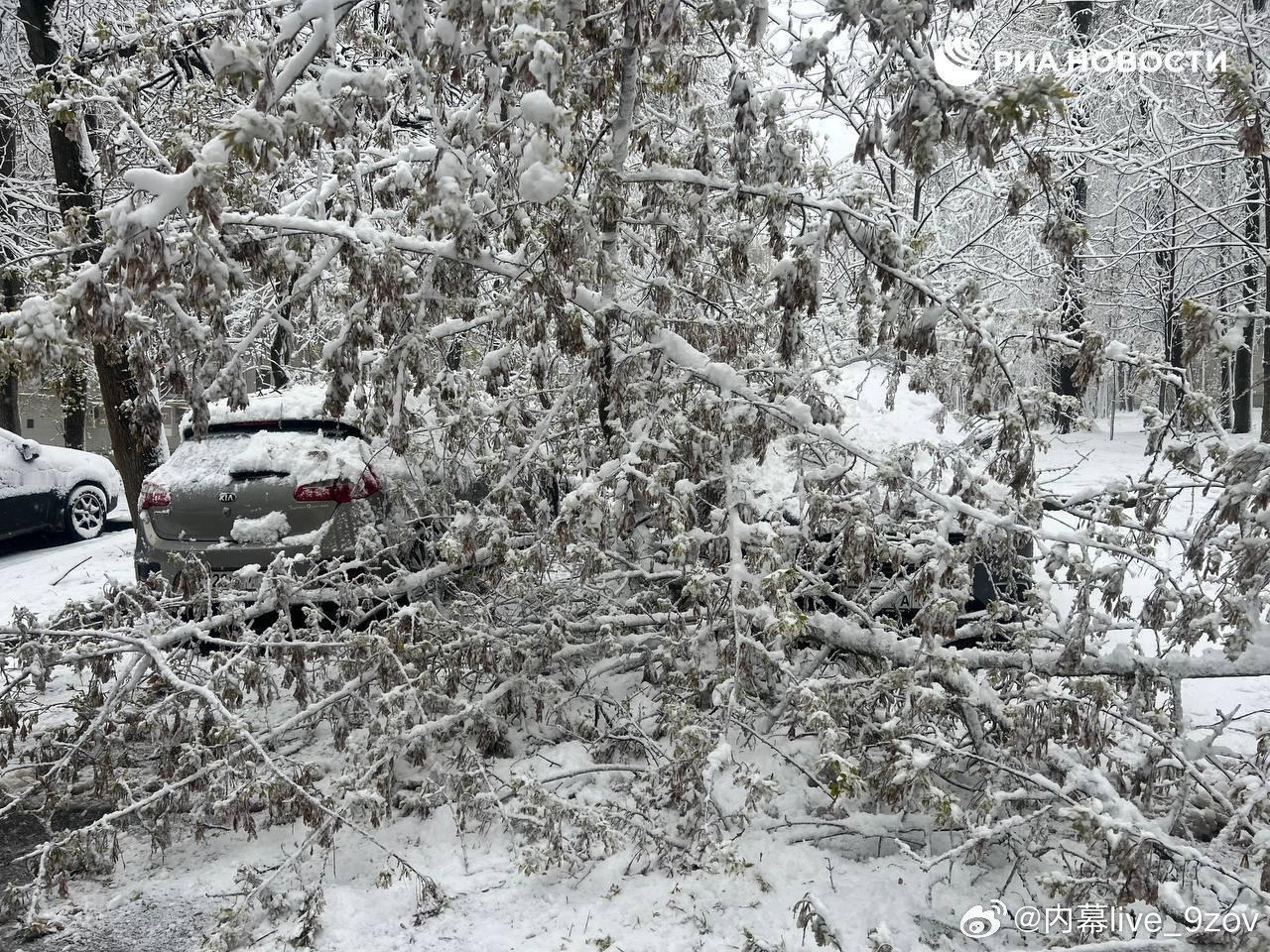 俄新社报道称,莫斯科遭遇暴风雪及阵性降雪,树木倒伏