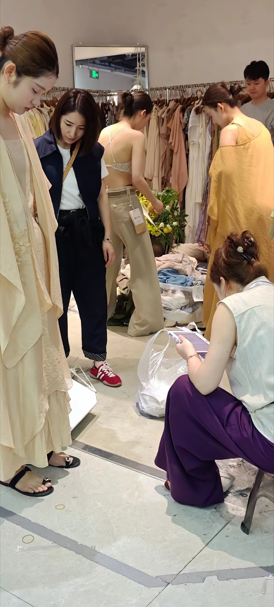 和朋友逛四季青看现场模特展示表演,顾客看中哪一件,就要求模特马上穿上看一下,其实模特这身材这相貌穿什么衣服都好看