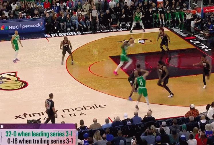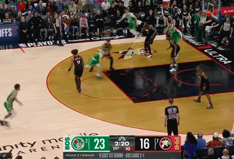 NBA季后赛,G4客场作战的凯尔特人128-96大胜76人大比分3-1拿到赛点。