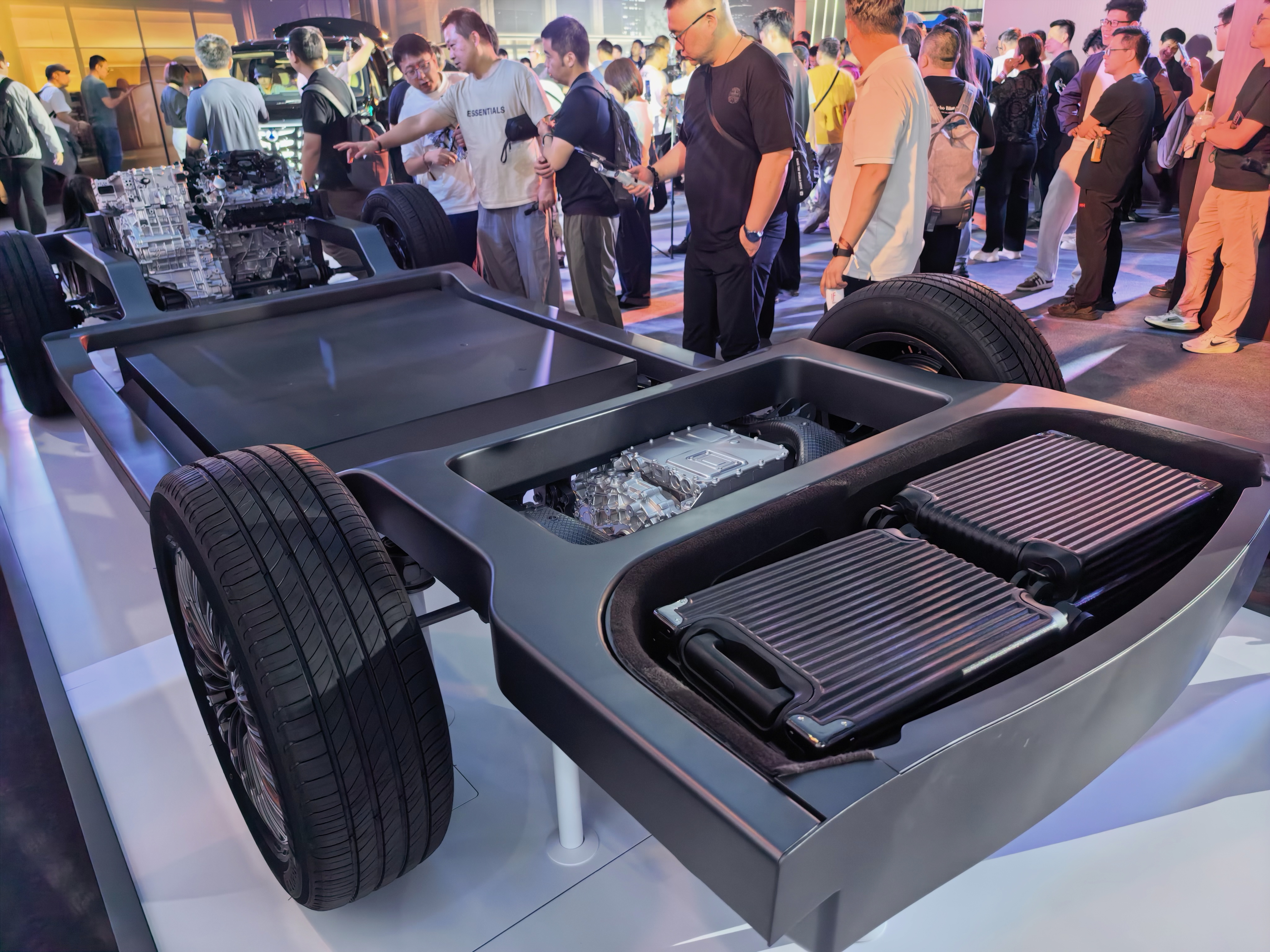 关键点在于后桥的结构,把排气管的消声器拿走,集成在发动机的下放。