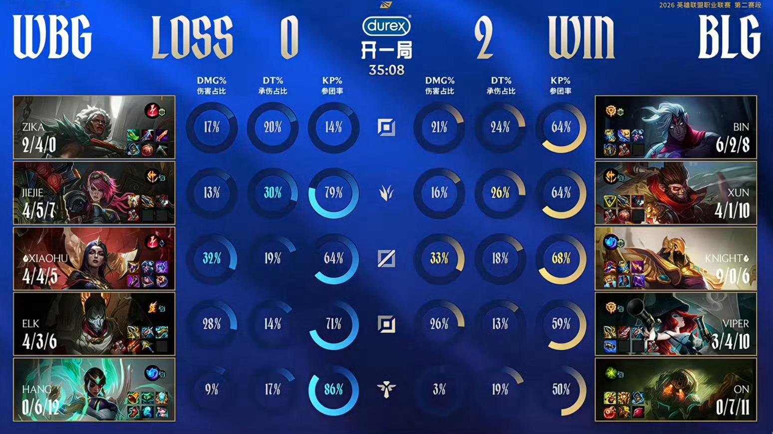 BLG战胜WBG赛后数据 【2026LPL第二赛段BO3】WBG 0-2 BLG