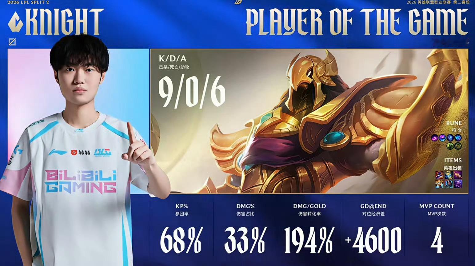 本局比赛的赛后数据:MVP给到Knight选手wbg官宣大象加入