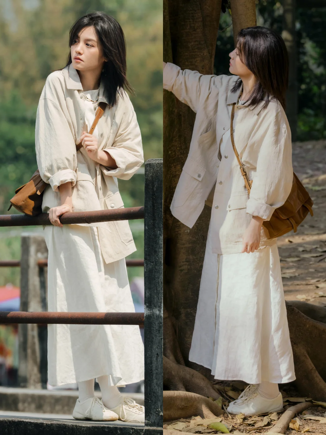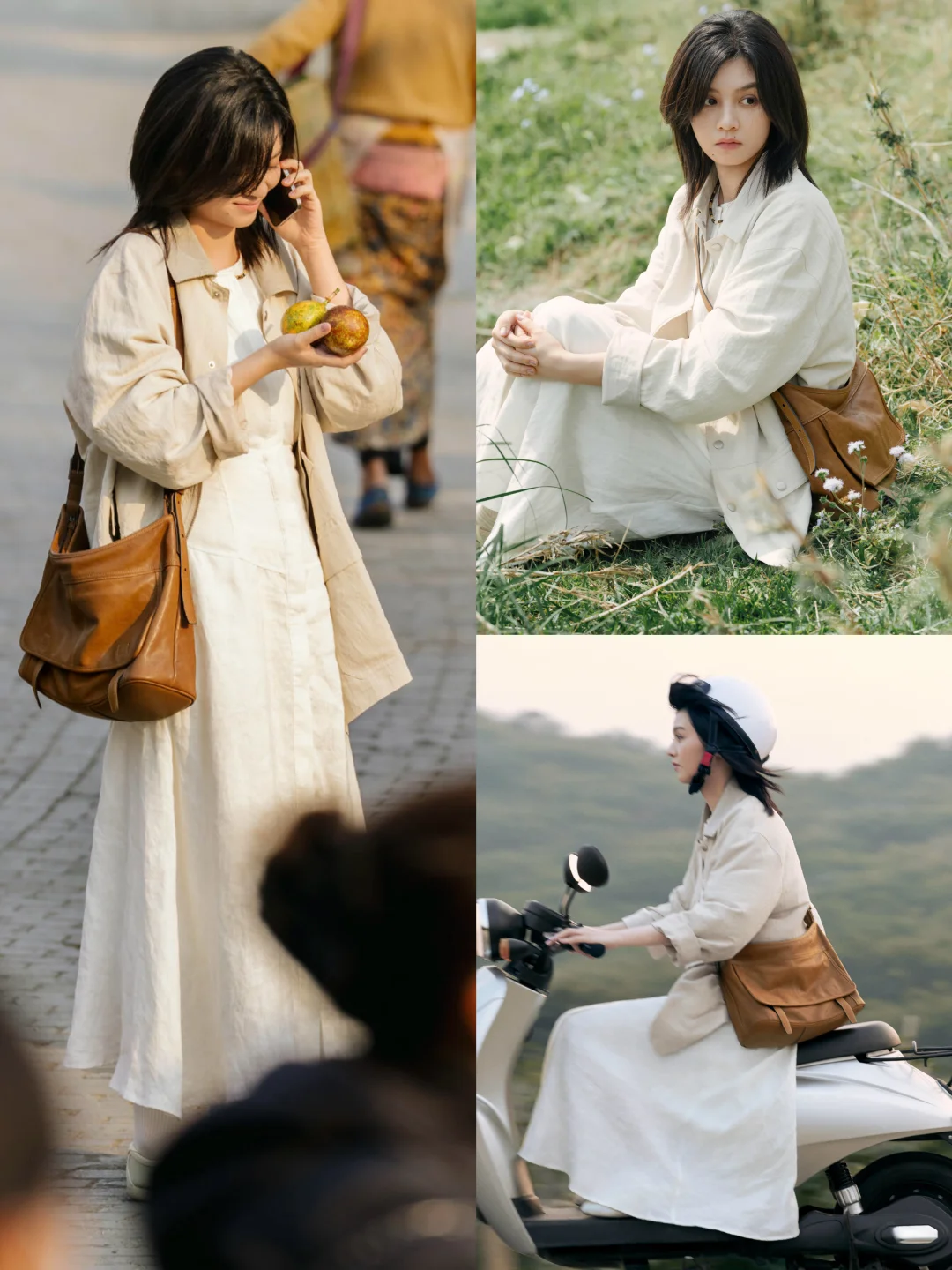 她真的太适合这种调子了。西南边陲小镇、阳光、树影、旧墙、风声,整个人安静得不像在拍广告,更像误入了一部文艺电影。