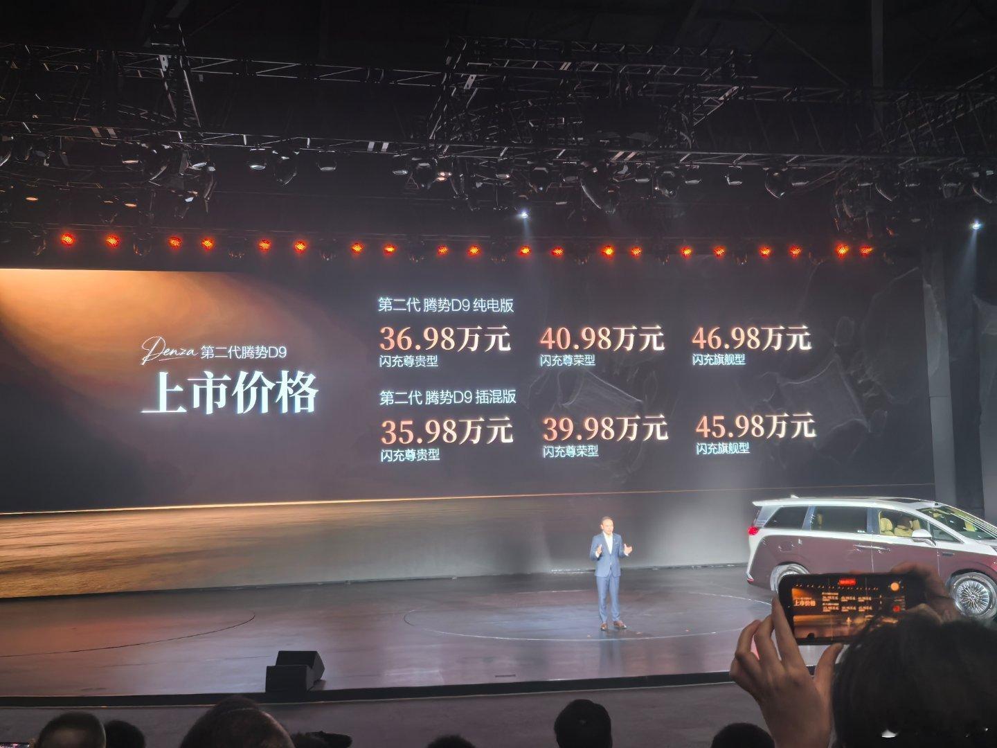 第二代腾势D9上市价出来了:插混版35.98万起,纯电版36.98万起,顶配46