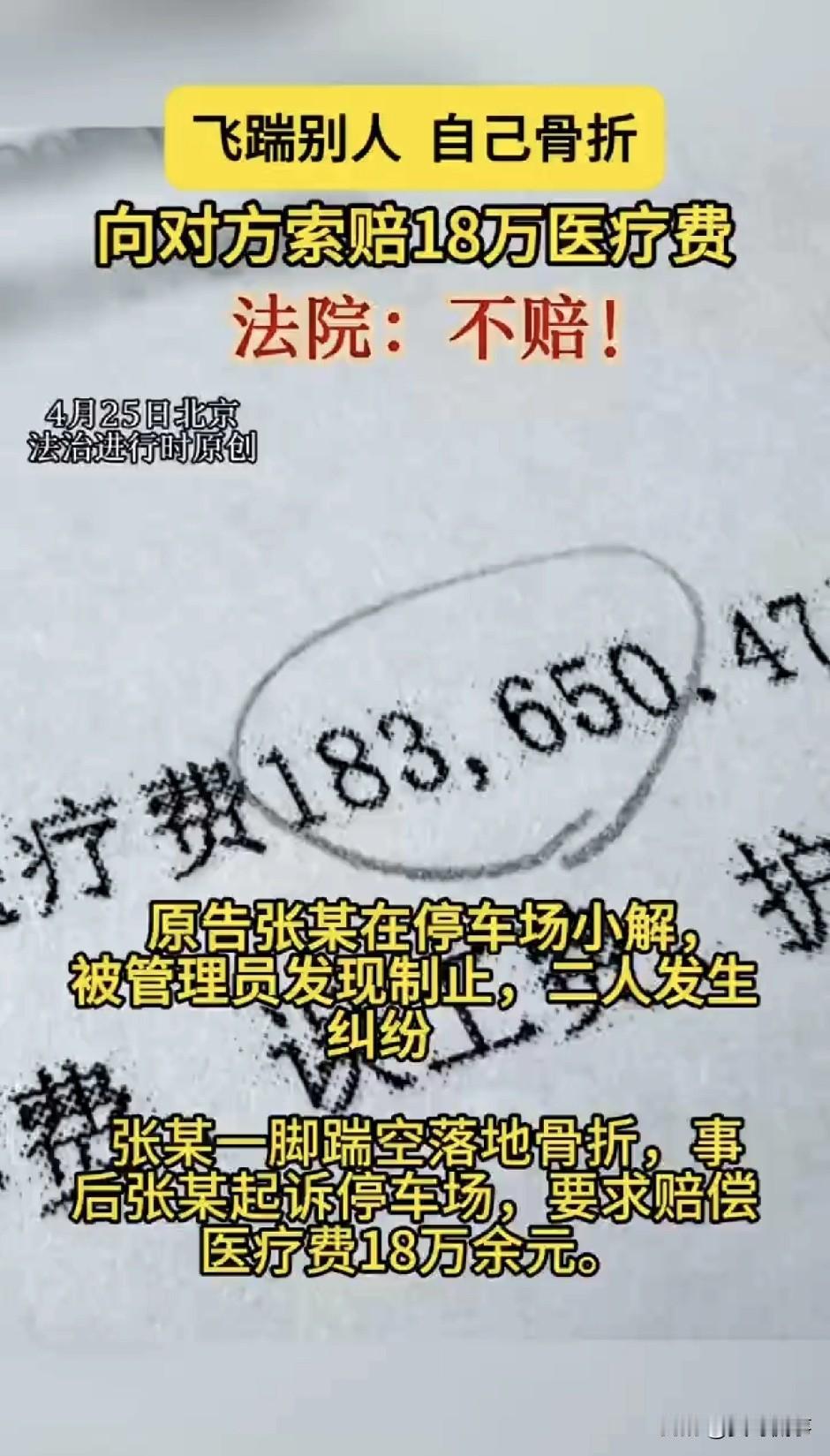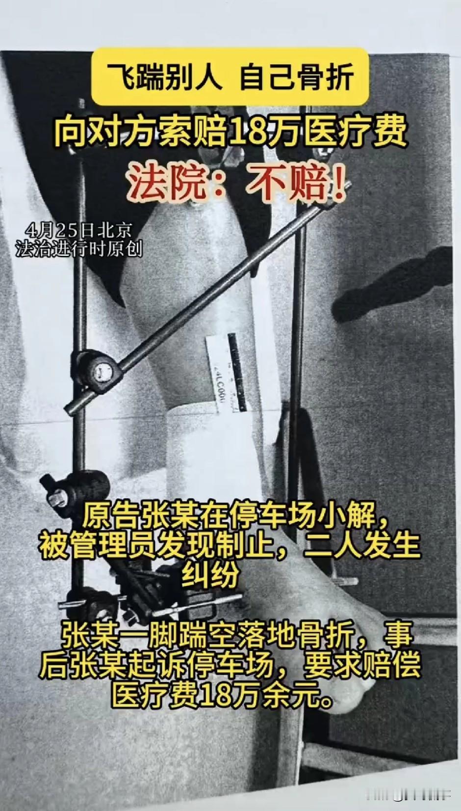 荒唐至极!北京,一男子酒后在停车场随地大小便,管理员看到后,便上前制止,哪知男子认为对方是在多管闲事,双方就此发生争执。期间,男子因情绪激动,便腾空想要飞踹管理员,怎料因一脚踹空,男子最终摔成了粉碎性骨折。事后,男子认为这都是管理员的错,在来到公安机关报案未果后,又将停车场管理公司告上法院索赔180000元,法院这样判了!