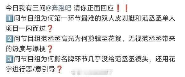刷到范丞丞粉丝给跑男官博排字了,认为《奔跑吧》不尊重范丞丞,高光都剪到花絮。