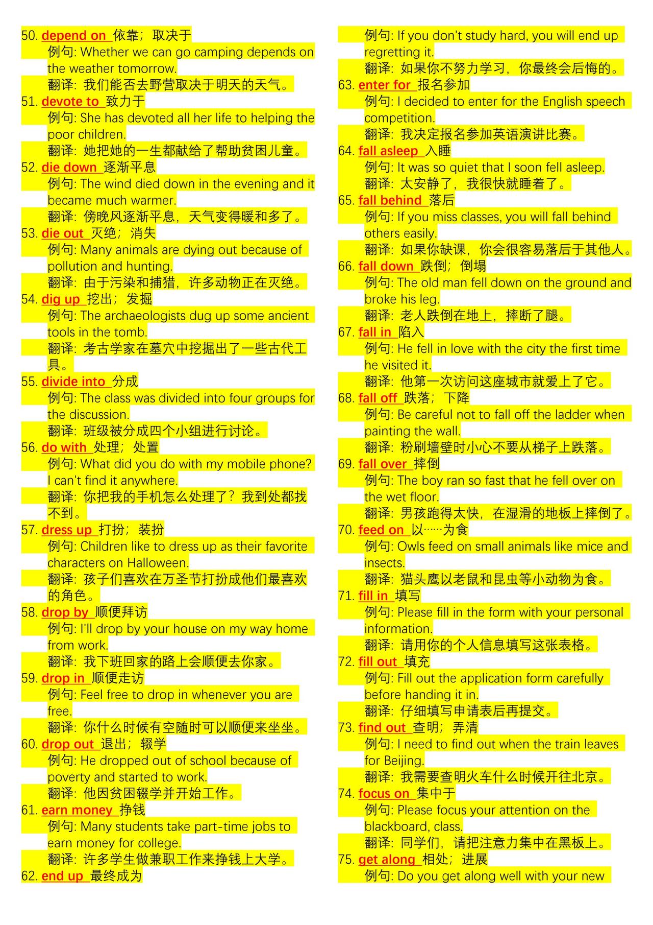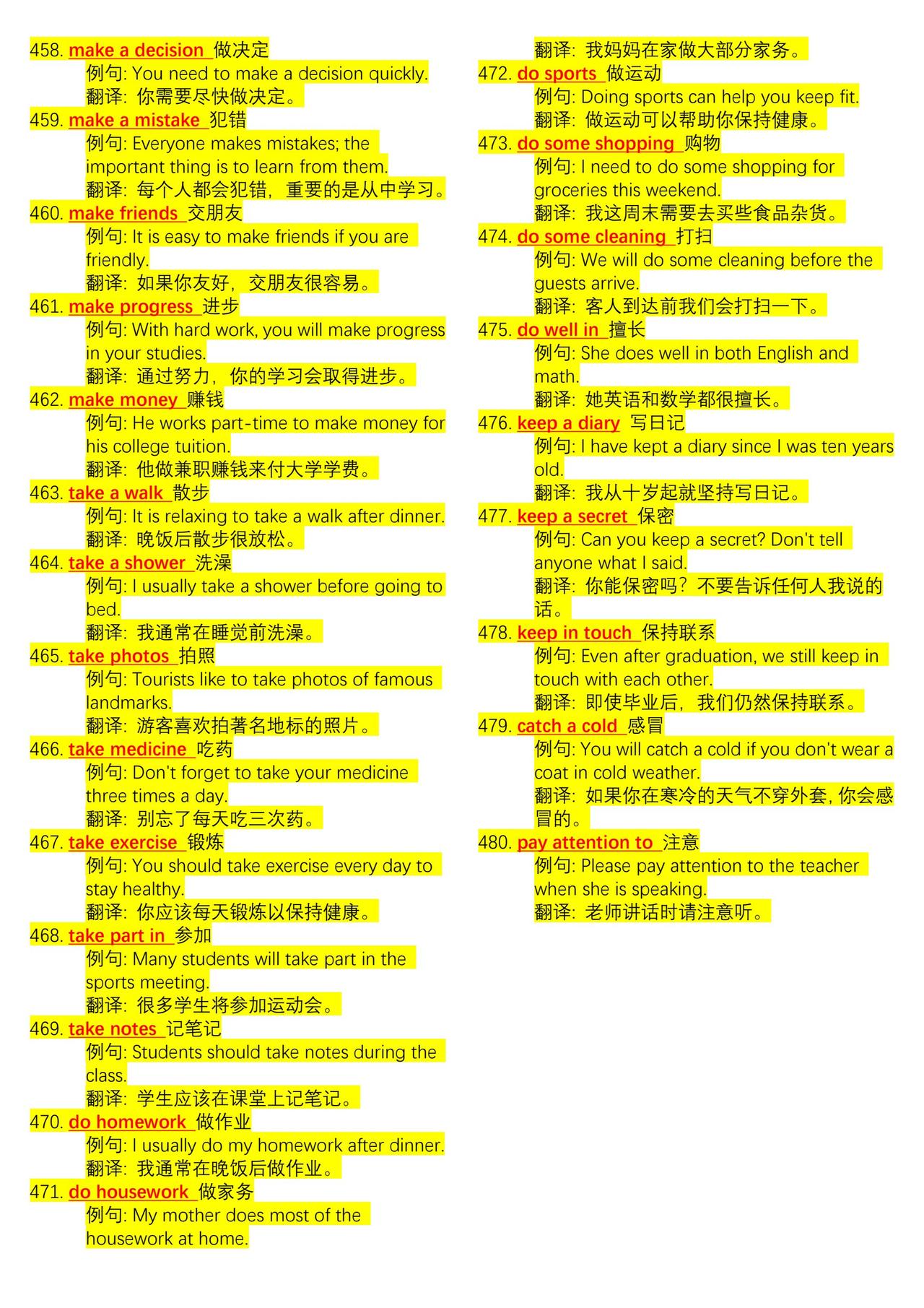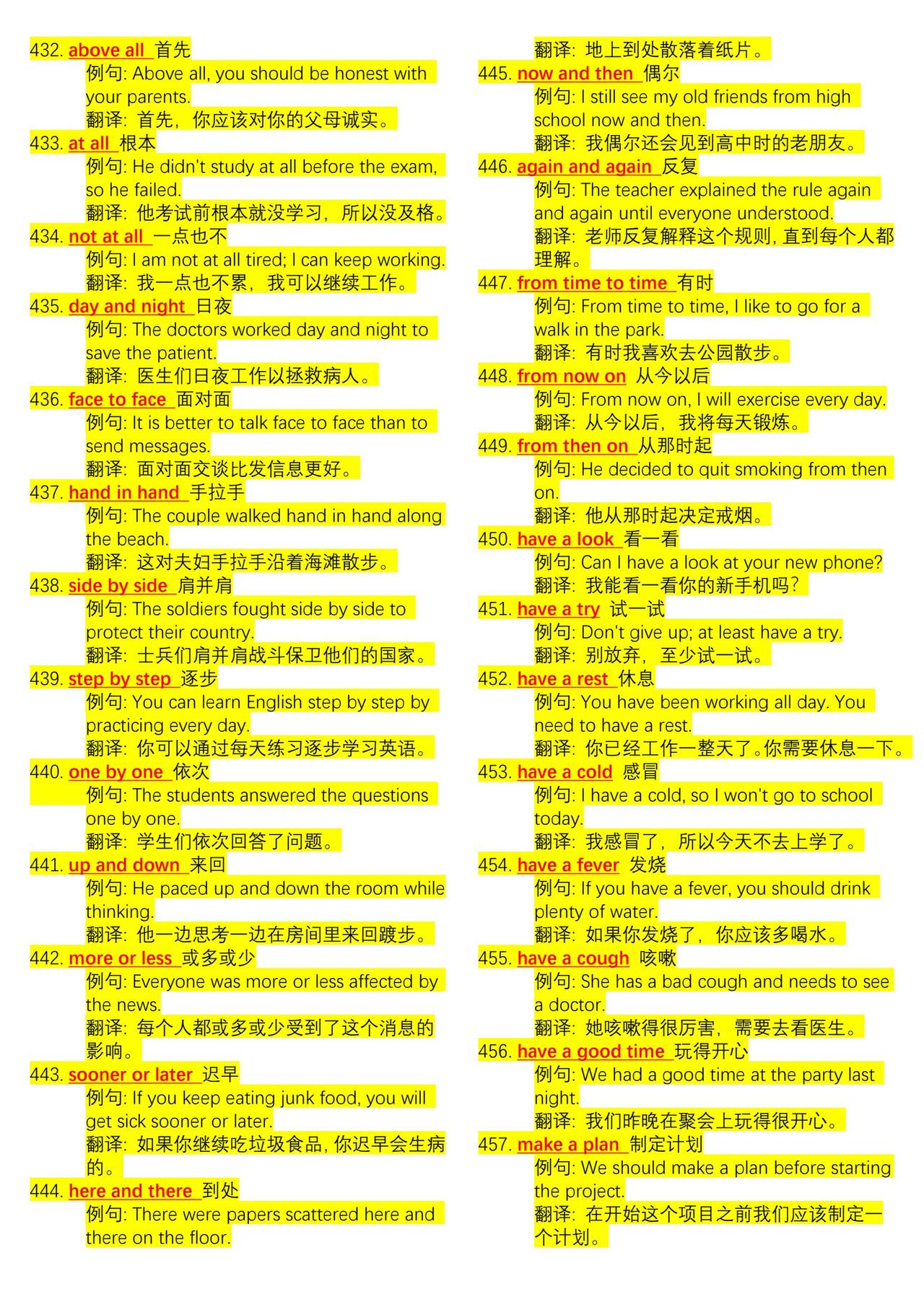 中考英语完型填空480组核心固定搭配。学好英语最简单高效的方法不是背单词而是背句