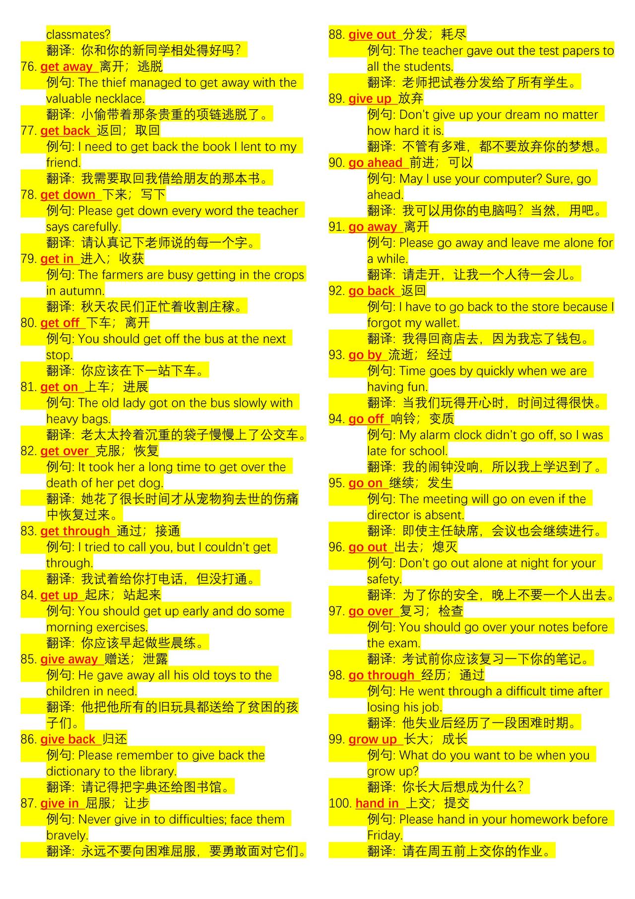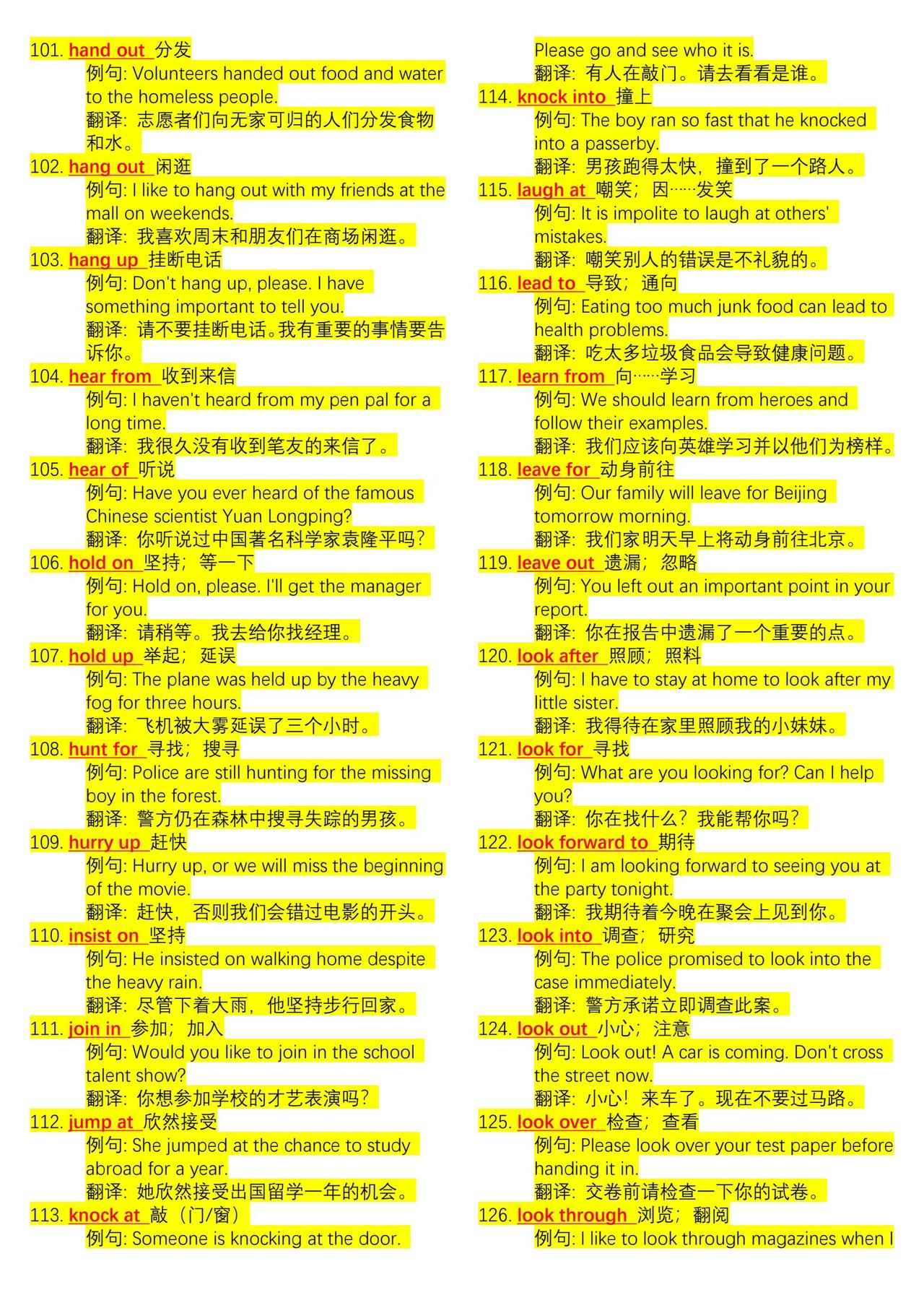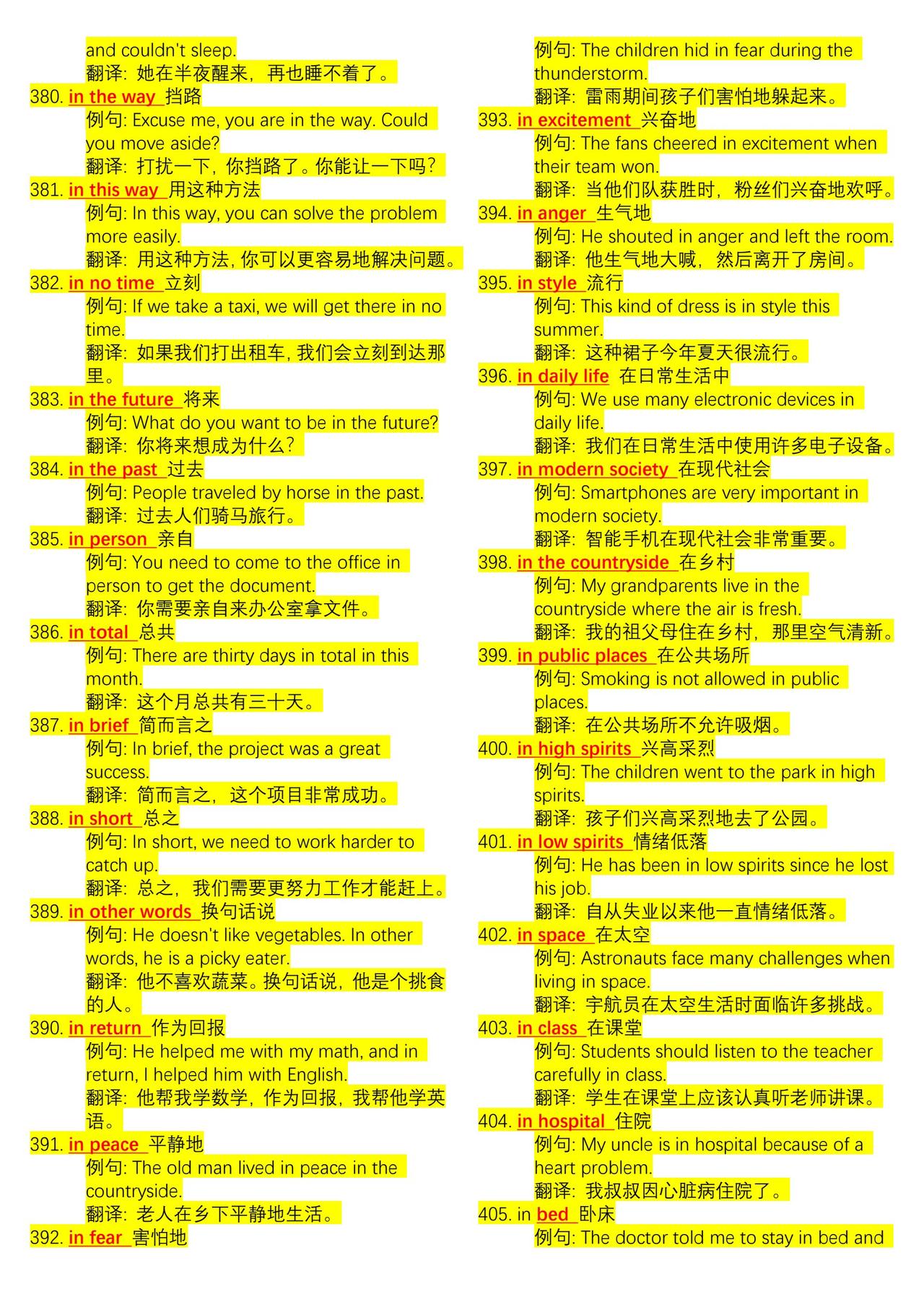 中考英语完型填空480组核心固定搭配。学好英语最简单高效的方法不是背单词而是背句