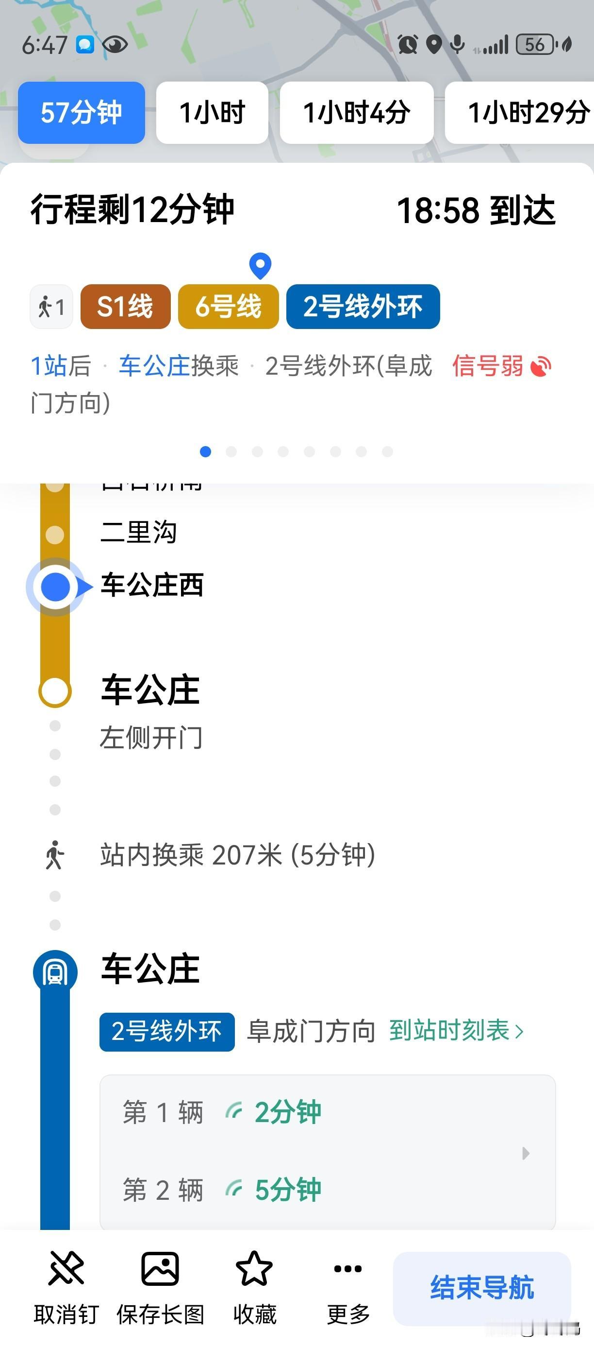 说到这地铁,就更乱套了。从S1线换乘到6号线,再换乘2号线,换乘2号线时,我在车公庄西下了车,上下电梯了两圈,都没找到换乘通道。看了一眼手机才知道早下了一站,又接着上去坐到车公庄,这才找到换乘的路。