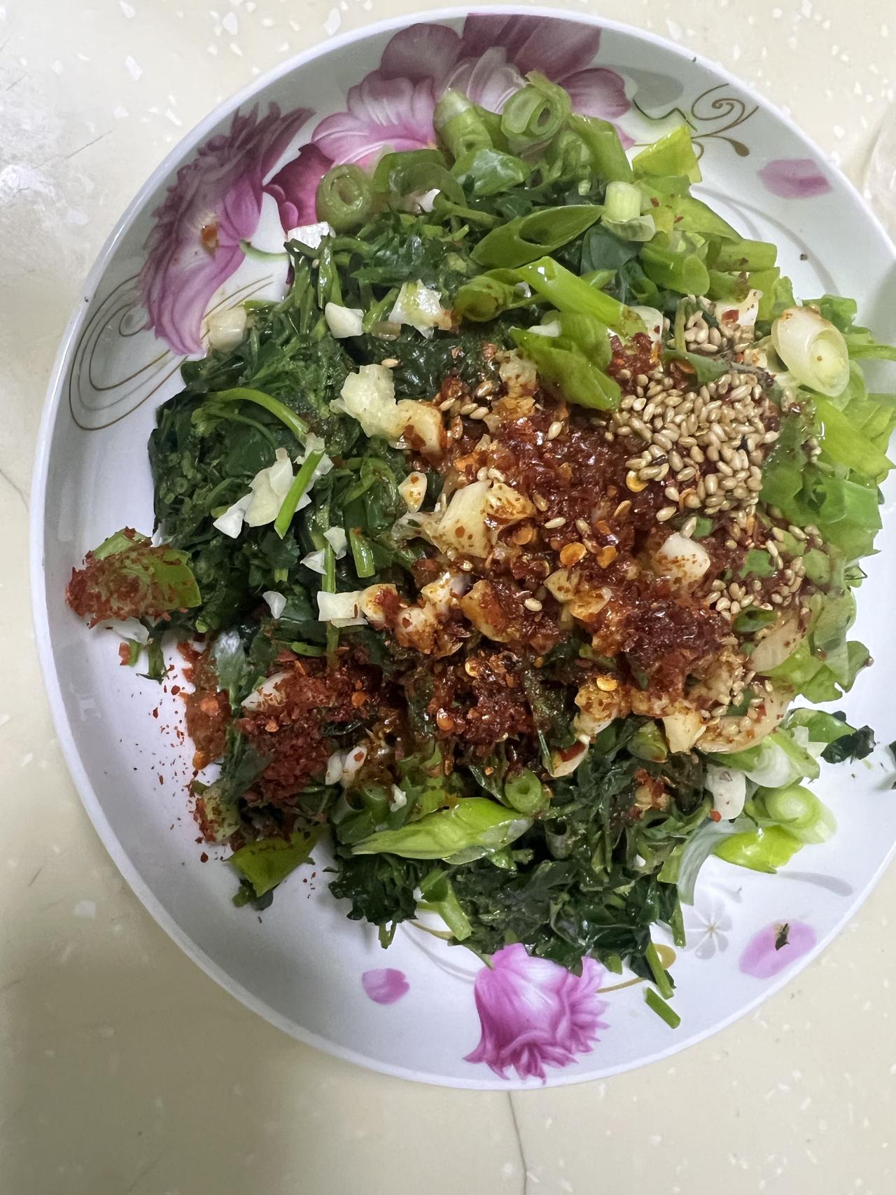 用昨天拔的野菜,今天自己和面自己擀皮,做了野菜肉馅饺子,还凉拌了野菜,别提吃的多舒服了。