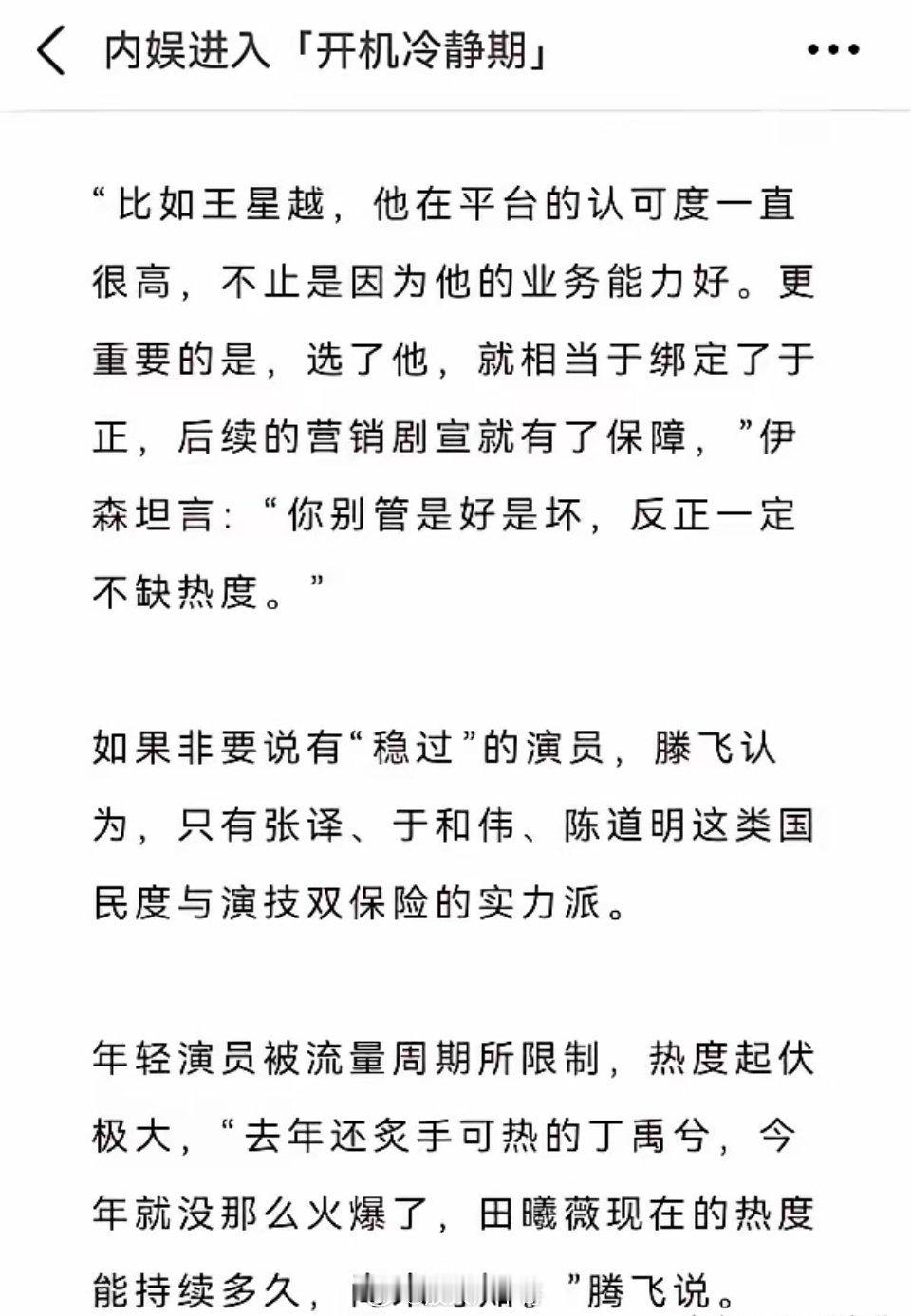平台明确不要的艺人没有“绝对能过会”的演员,却有“平台明确不要”的艺人。田曦薇靠逐玉飞升流量新星。片酬不止腰斩,甚至是往年巅峰期的三折某业内眼里现在古偶项目能直接过会的三个🥜:宋威龙、王星越、陈哲远