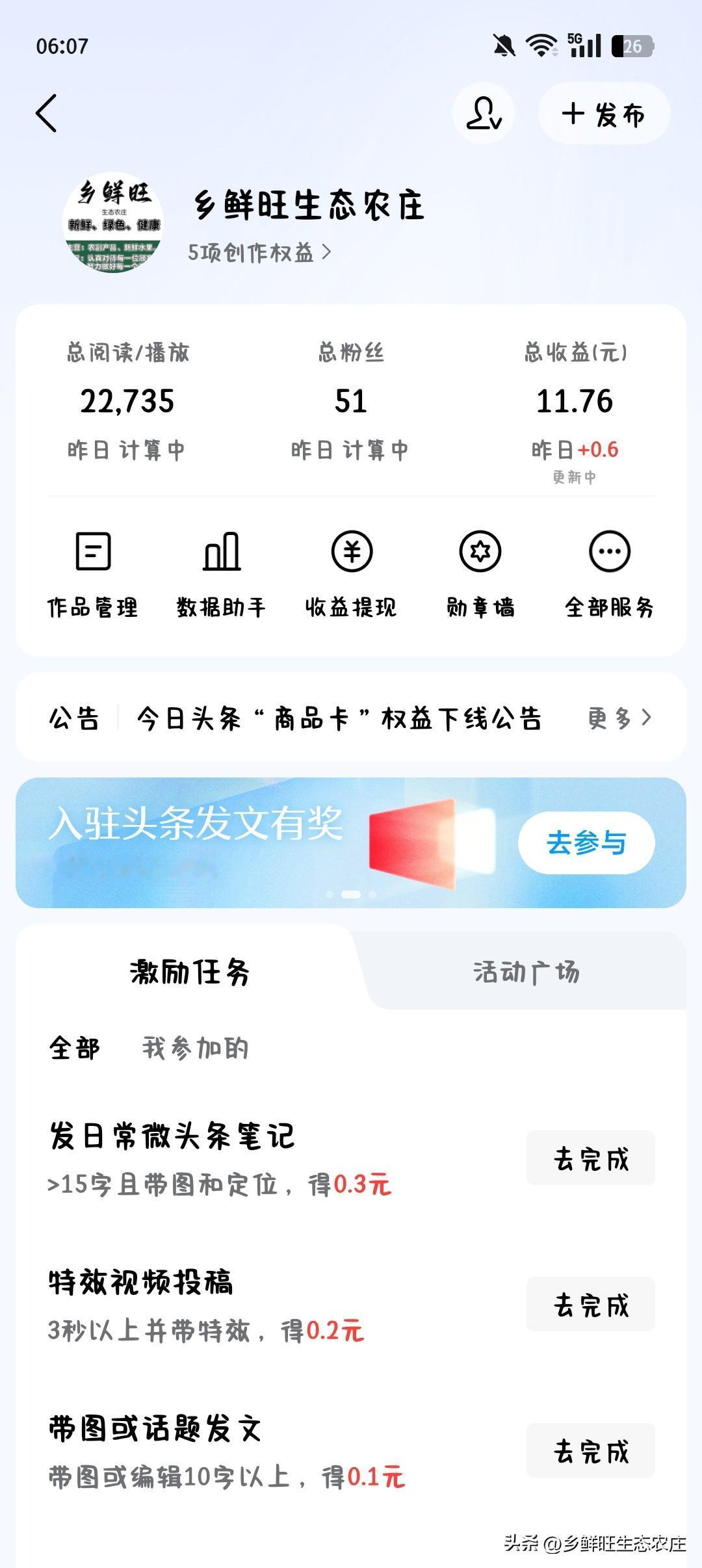 经过一个星期的努力,终于满足条件,成功申请头条新锐创作者了。