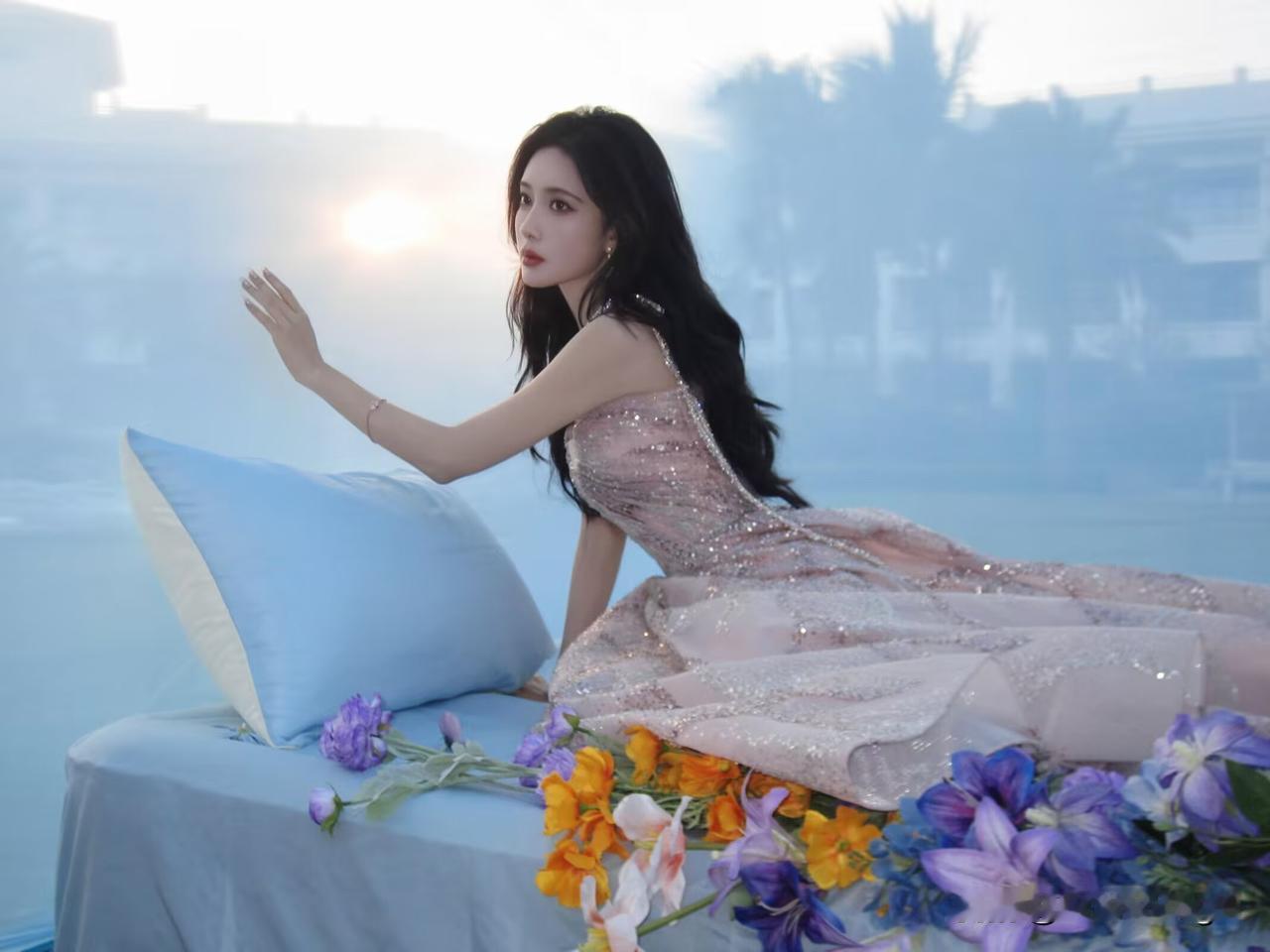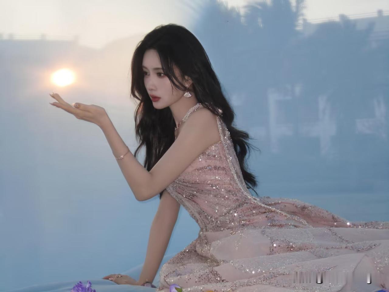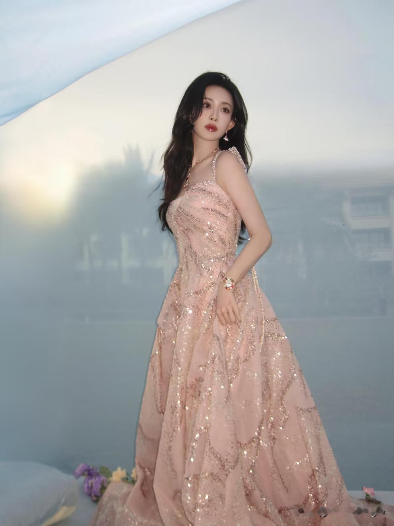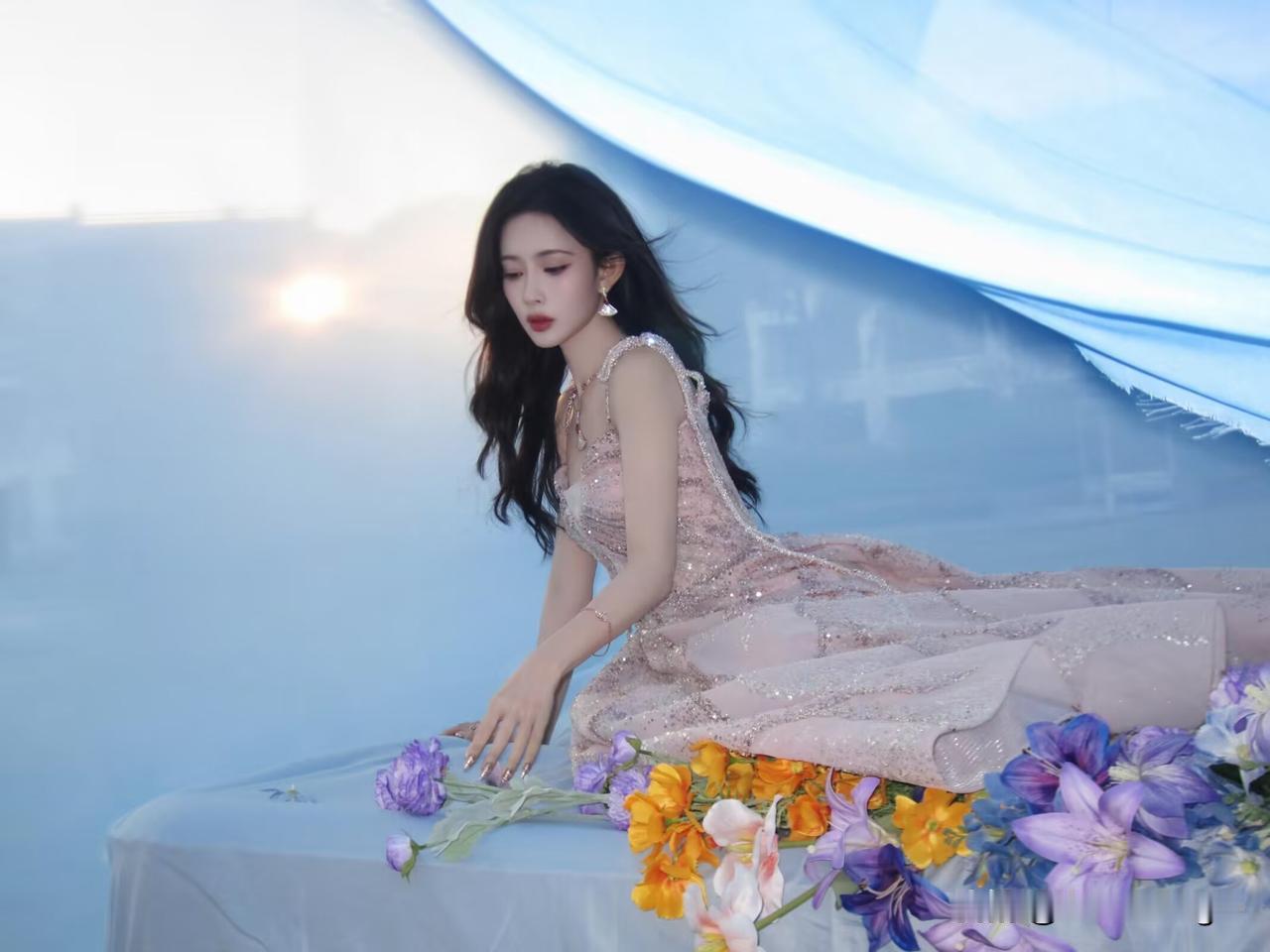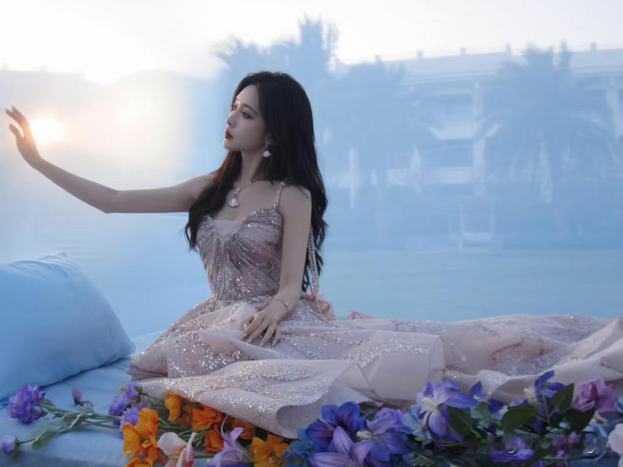 梦幻仙境中的优雅仙女,粉色礼服与绚丽花海相映成趣。