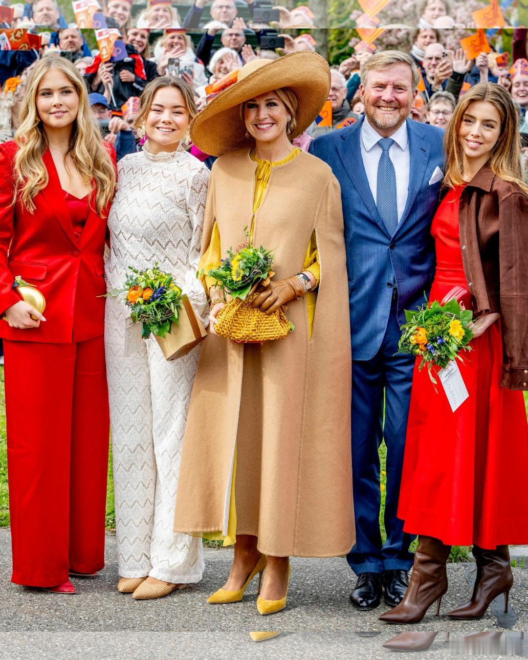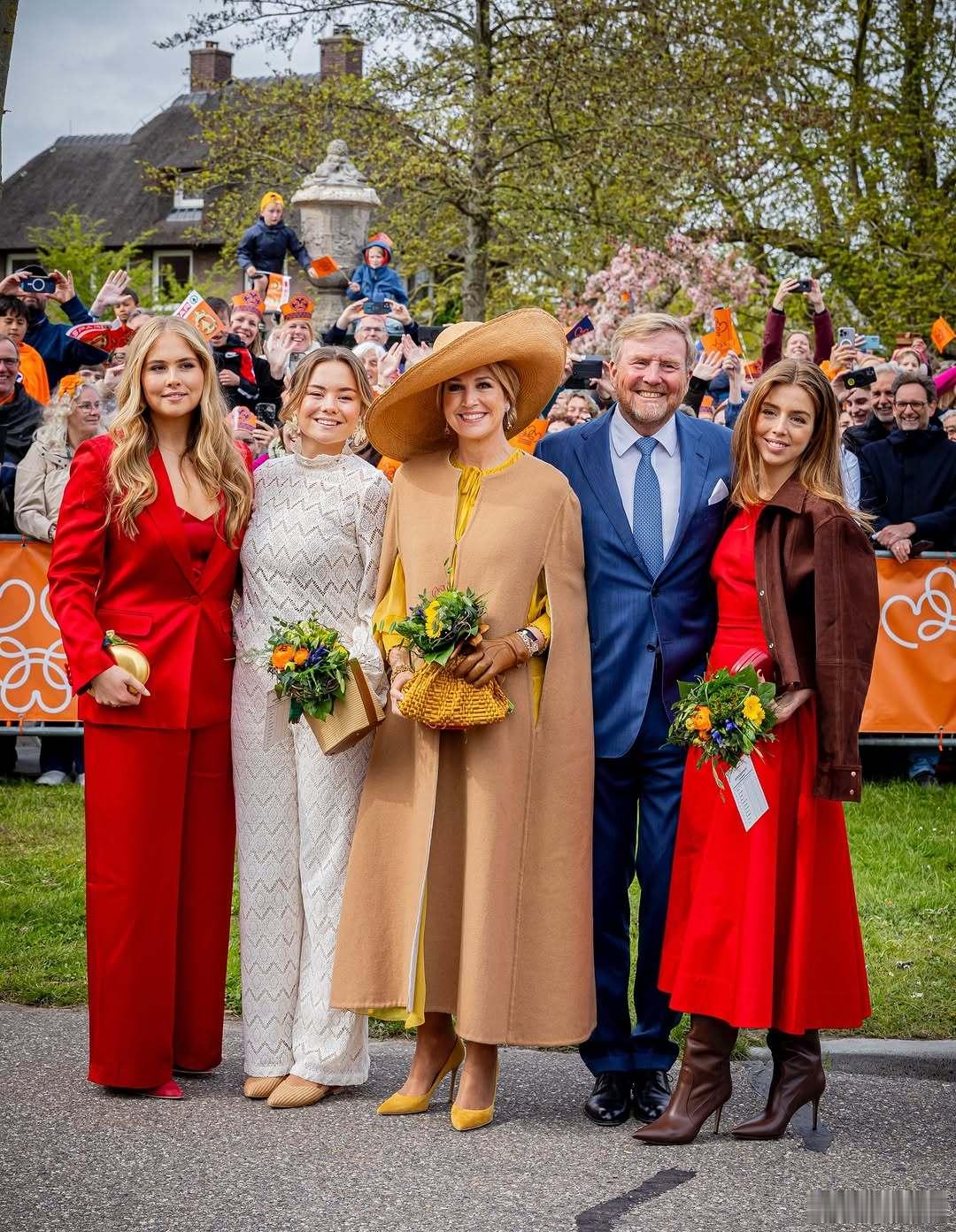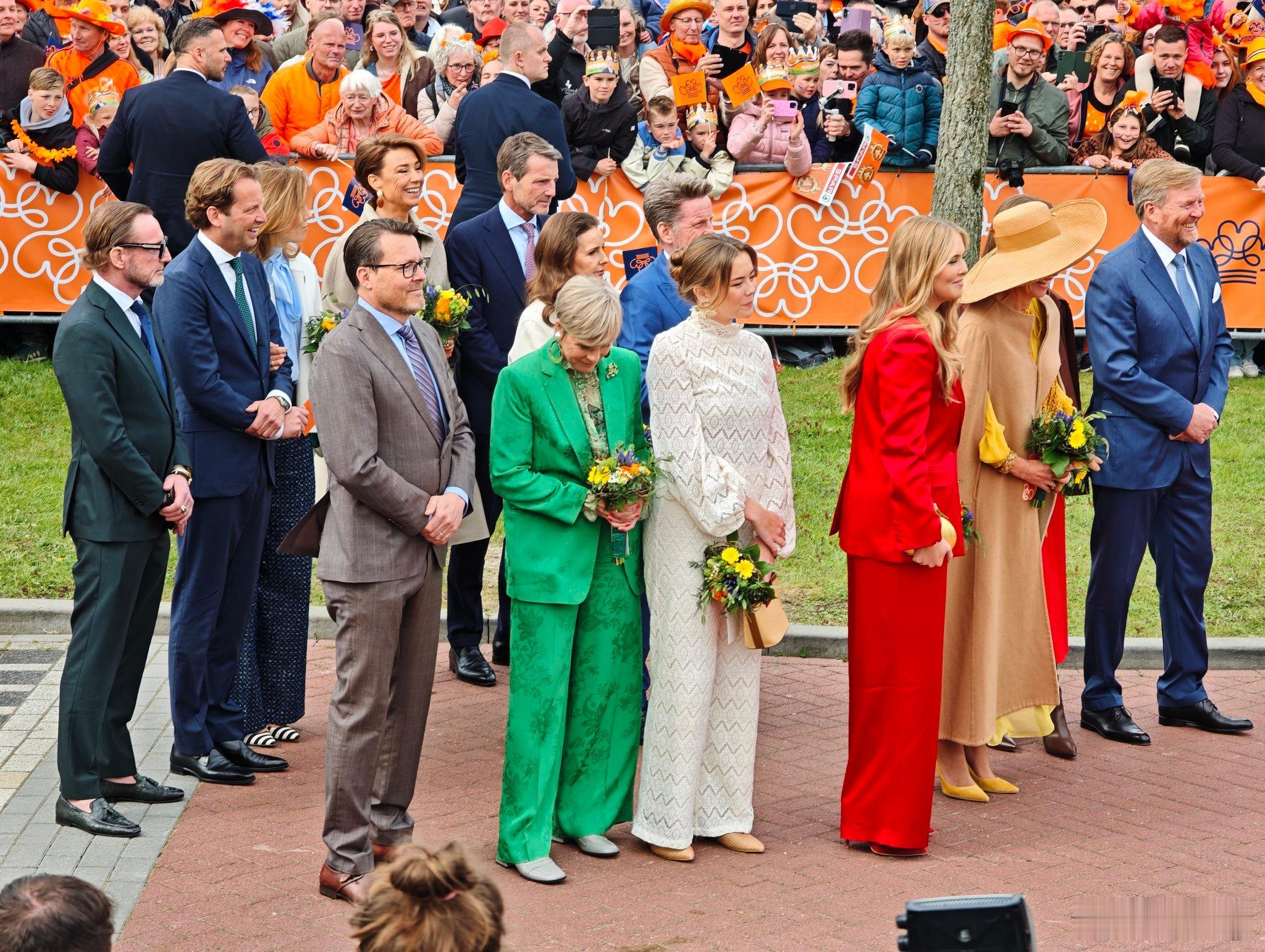 荷兰王室 🇳🇱4月27日,国王一家和表弟表弟媳在荷兰北部弗里斯兰省的多克姆庆祝的59岁生日,也是一年一度的国王节。今年少了安妮特王妃。世界各国王室 荷兰王室成员的衣服就是艳压群芳,五颜六色大杂烩,够醒目。