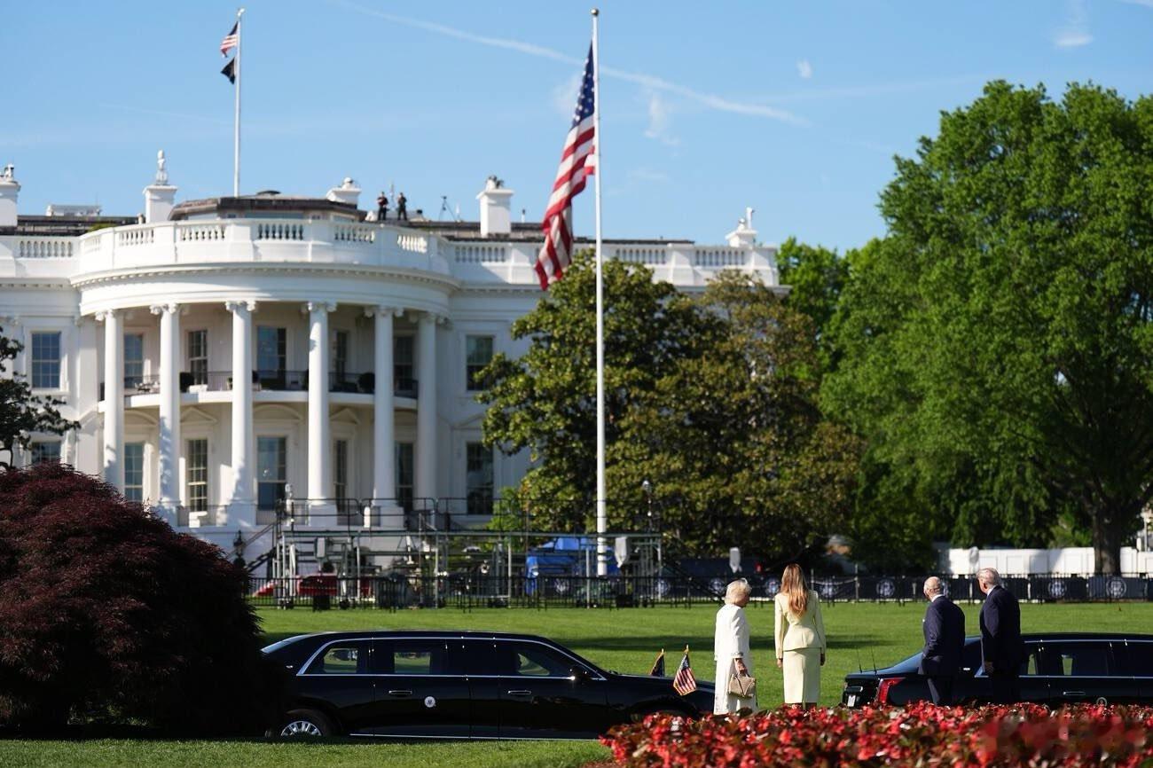 英国王室 🇬🇧🇺🇸4月27日,查尔斯国王和卡米拉王后抵达白宫南门廊,特朗