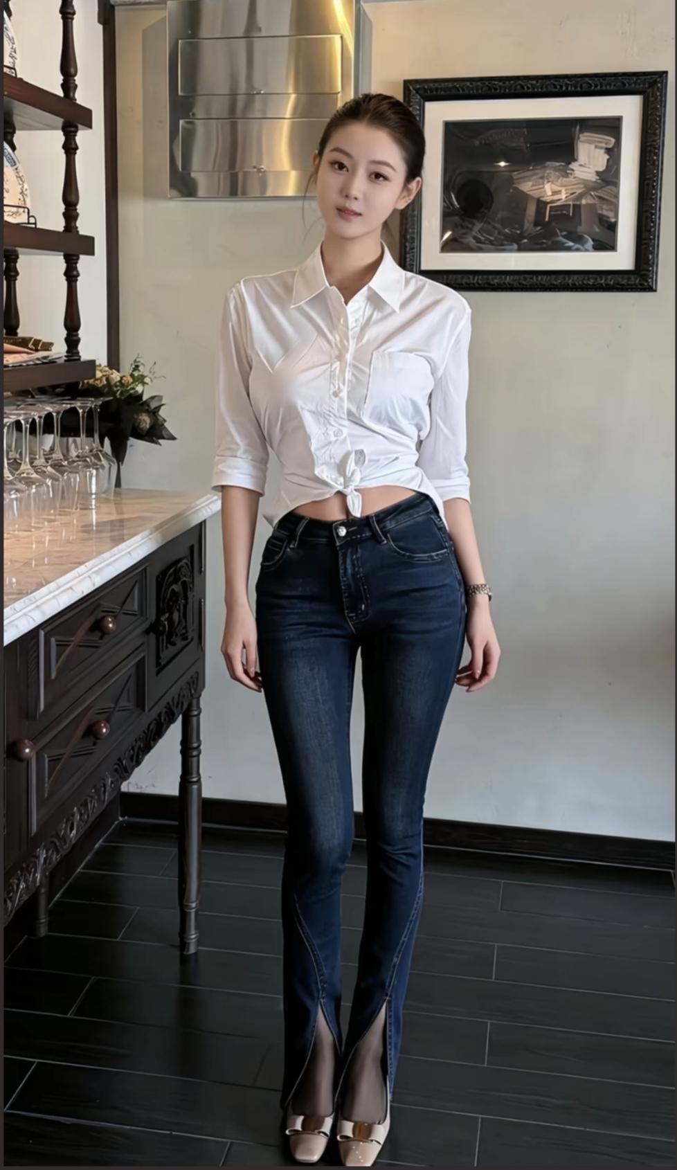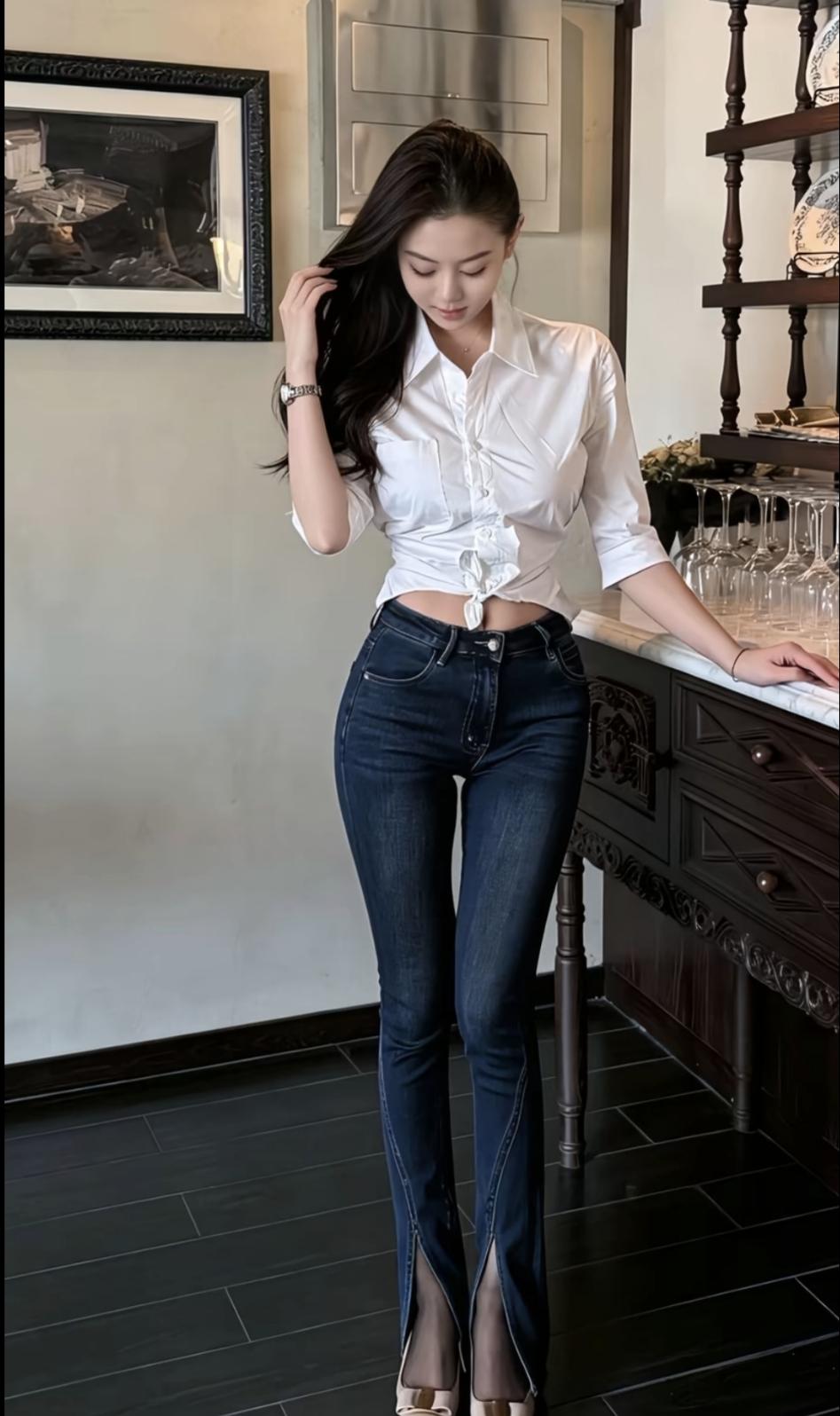 深靛蓝紧身牛仔裤,才是真正的“显瘦天花板”✨