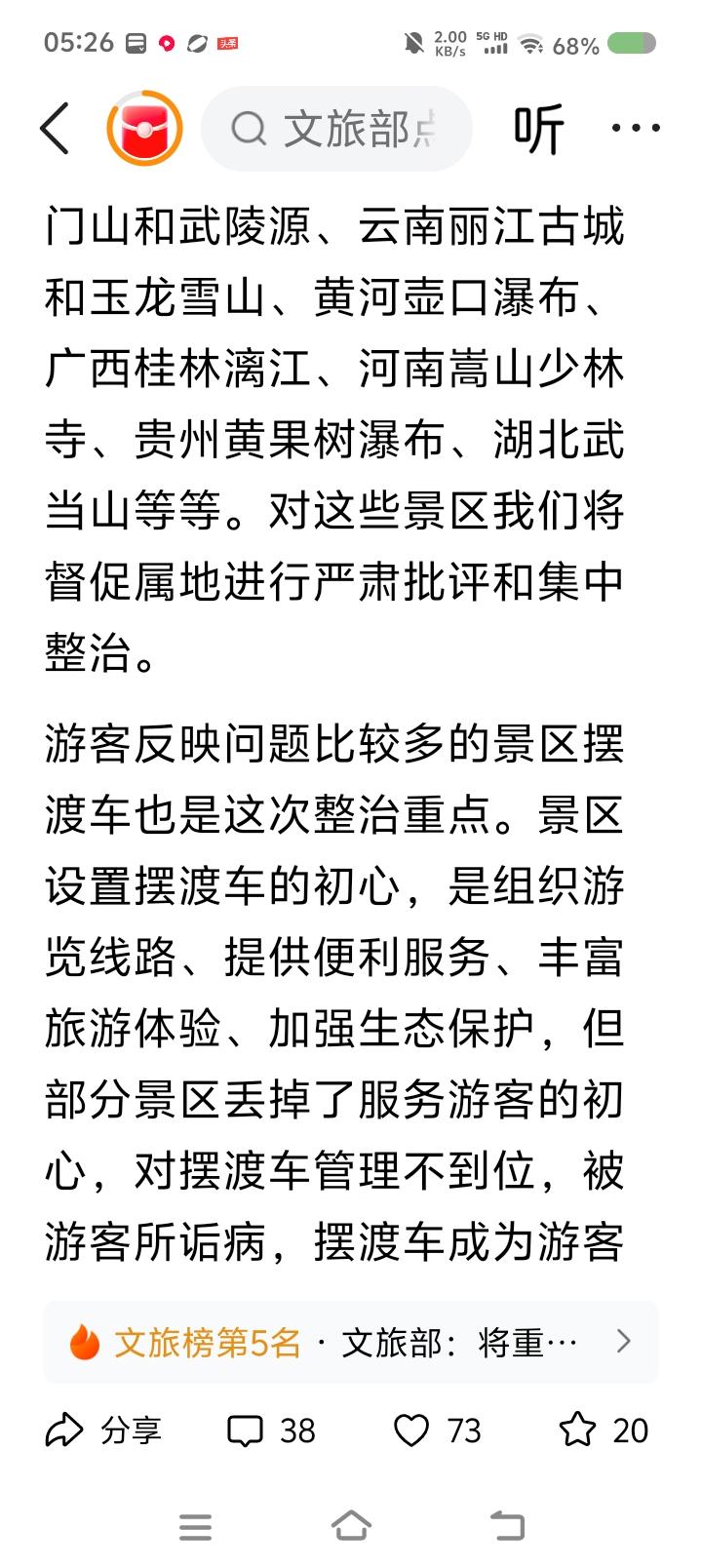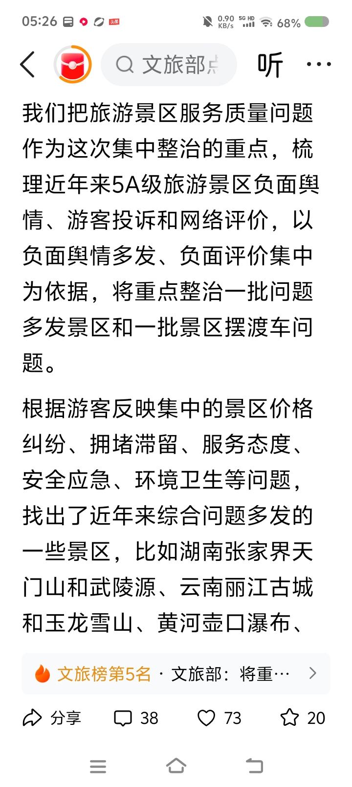 针对景区乱象,文旅部动刀了—— 据报道,一些景区服务质量存在严重问题,文旅部将集