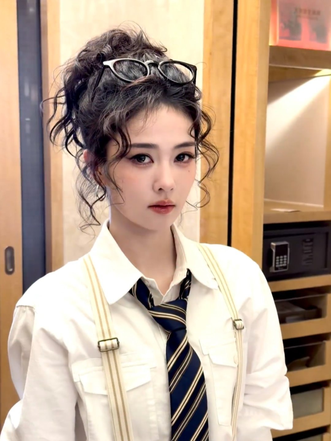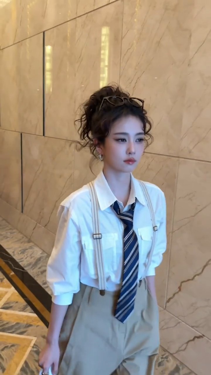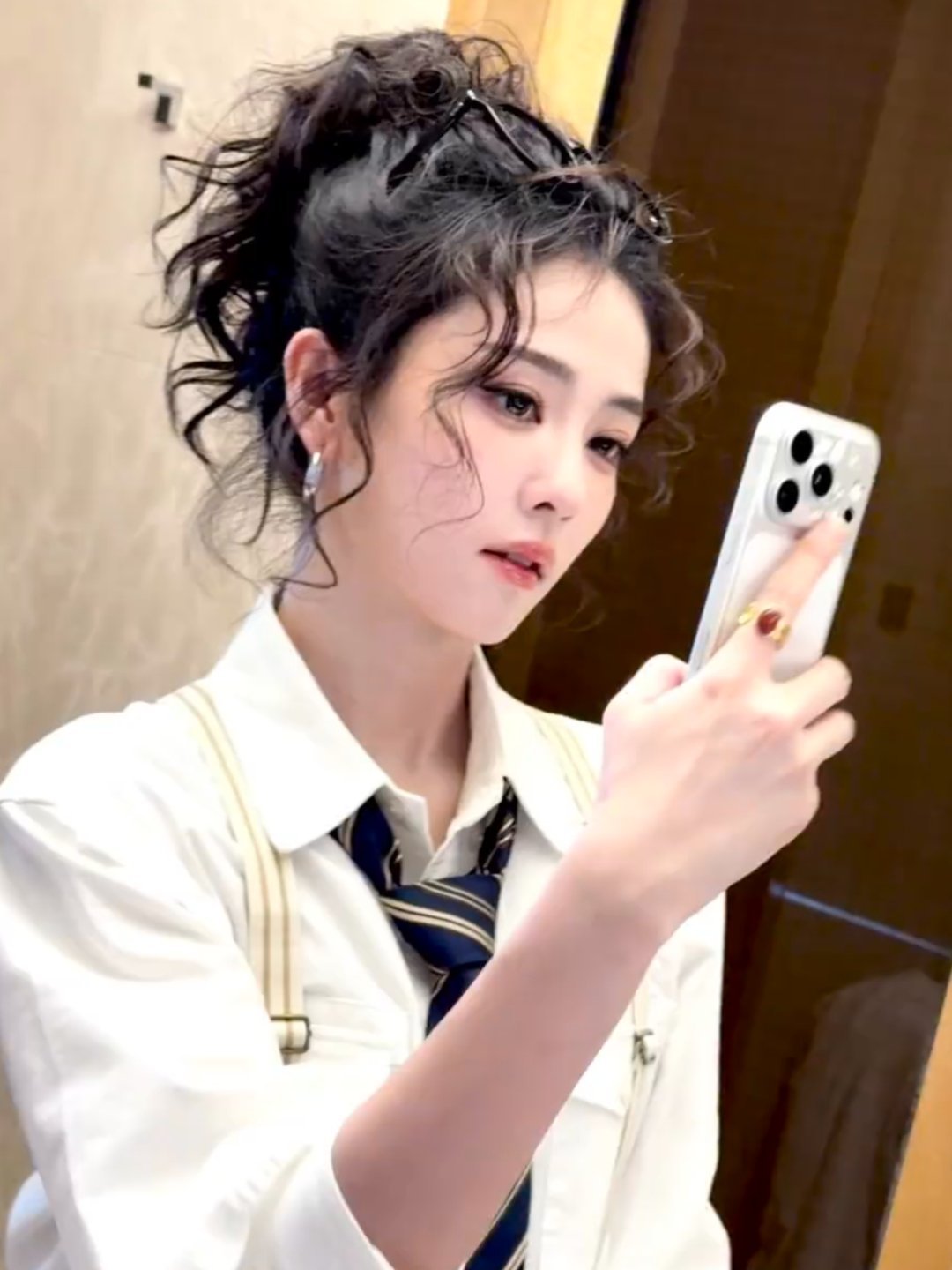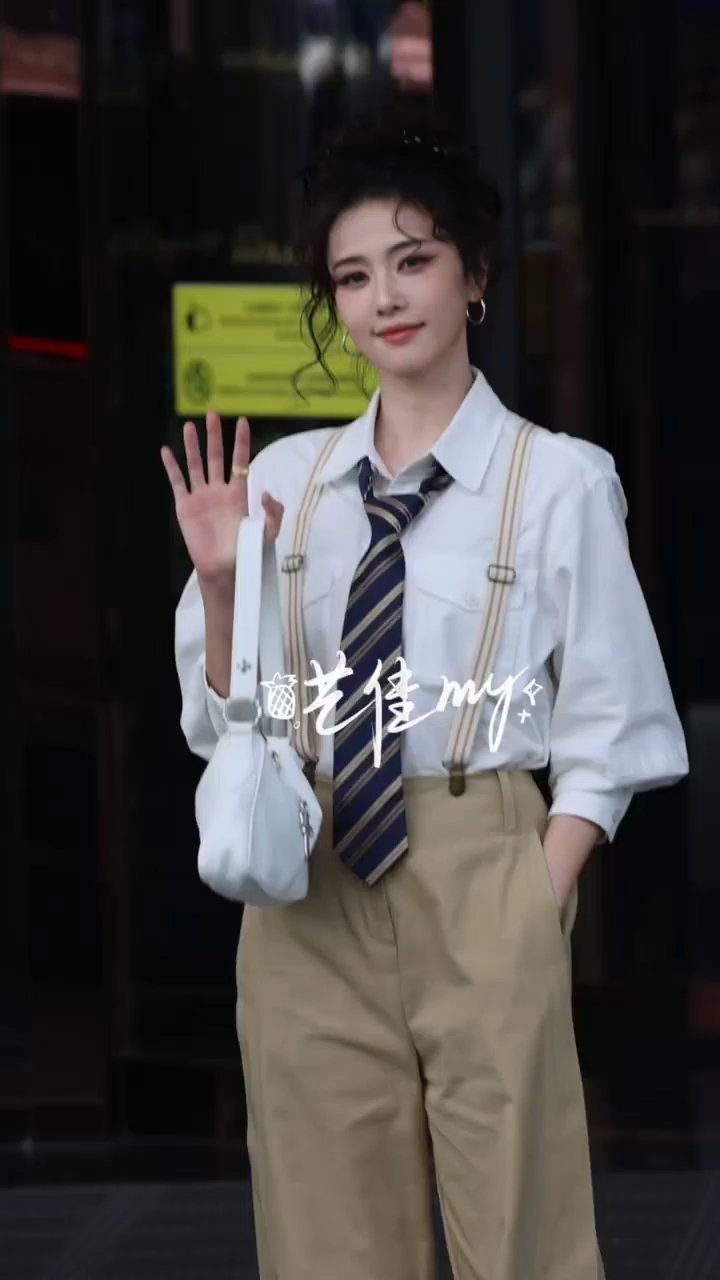 今天背带裤版白鹿好有少年感哇白鹿白衬衫背带裤造型白鹿卷发背带裤造型